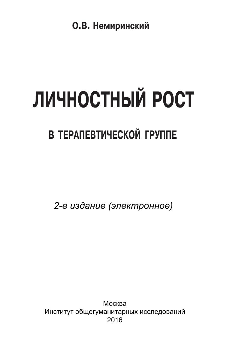 Игорь Вачков: «В книге известного психотерапевта О. Немиринского есть глубокий, вдумчивый анализ группового психотерапевтического процесса как динамики личностных изменений участников. Есть новый, нестандартный взгляд на содержательные аспекты этого процесса. Есть попытка выйти на феноменологический и одновременно строго научный уровень осмысления того, что происходит с личностью на разных стадиях развития группы… Автор этой небольшой по объему работы пошел значительно дальше многих маститых западных исследователей групповой динамики: он вскрывает ограниченность подходов, рассматривающих развитие группы лишь в социально-психологическом контексте, но не увязывающих его с индивидуальным личностным ростом… О. Немиринский доказывает чрезвычайно важное и с теоретической и с практической точек зрения положение о том, что существует определенная последовательность актуализации и проживания личностных проблем в группе: не пройдя более «ранние» проблемы, группа не в состоянии помочь своим членам продуктивно решать более «поздние» проблемы…