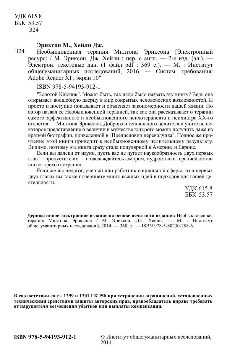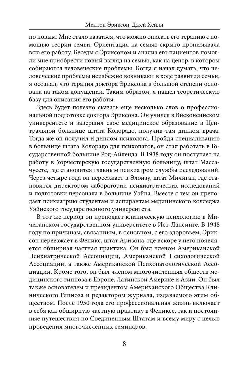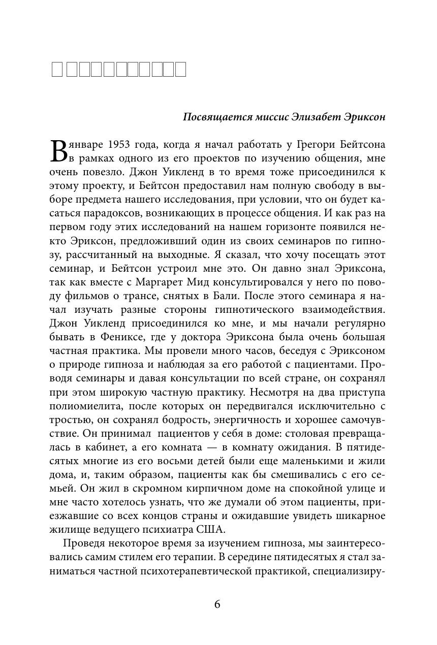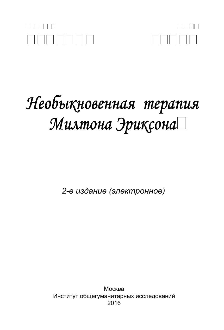 «Золотой Ключик». Может быть, так надо было назвать эту книгу? Ведь она открывает волшебную дверцу в мир сокрытых человеческих возможностей. И просто и доступно показывает и объясняет закономерности нашей жизни. Но автор назвал ее Необыкновенной терапией, так как она рассказывает о терапии самого эффективного и необыкновенного психотерапевта и психиатра ХХ-го столетия — Милтона Эриксона. Доброго и гениального целителя и учителя, некоторое представление о величии и мужестве которого можно получить даже из краткой биографии, приведенной в «Предисловии переводчика». Полное же прочтение этой книги приводит к необыкновенному целительному результату. Видимо, поэтому эта книга сразу стала популярной в Америке и Европе.