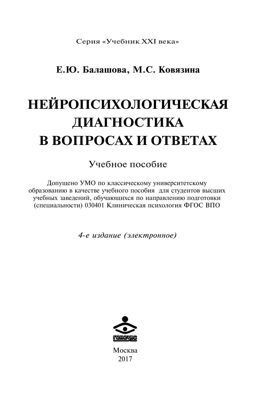 Нейропсихологическая диагностика в вопросах и ответах