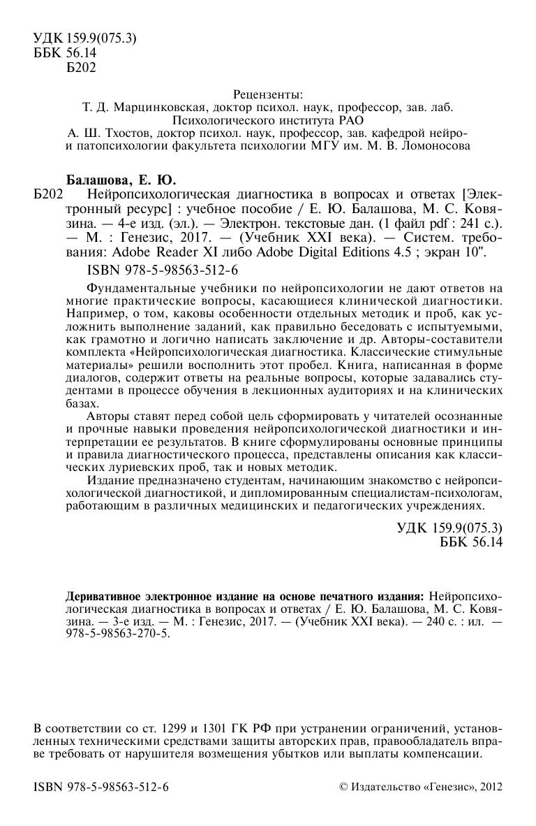 Издание предназначено студентам, начинающим знакомство с нейропсихологической диагностикой, и дипломированным специалистам-психологам, работающим в различных медицинских и педагогических учреждениях.