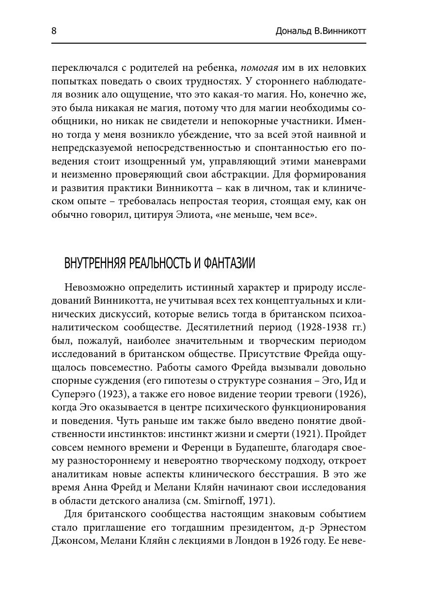 Дональд Вудс Винникотт (Donald Winnicott, 07.04.1896-28.01.1971) — великий британский педиатр, психиатр и детский психоаналитик. В книге собраны статьи и работы разных лет. Они позволяют проследить эволюцию его взглядов на психическое развитие ребёнка и методы его лечения.