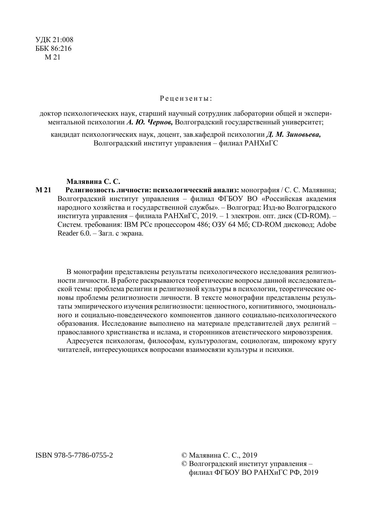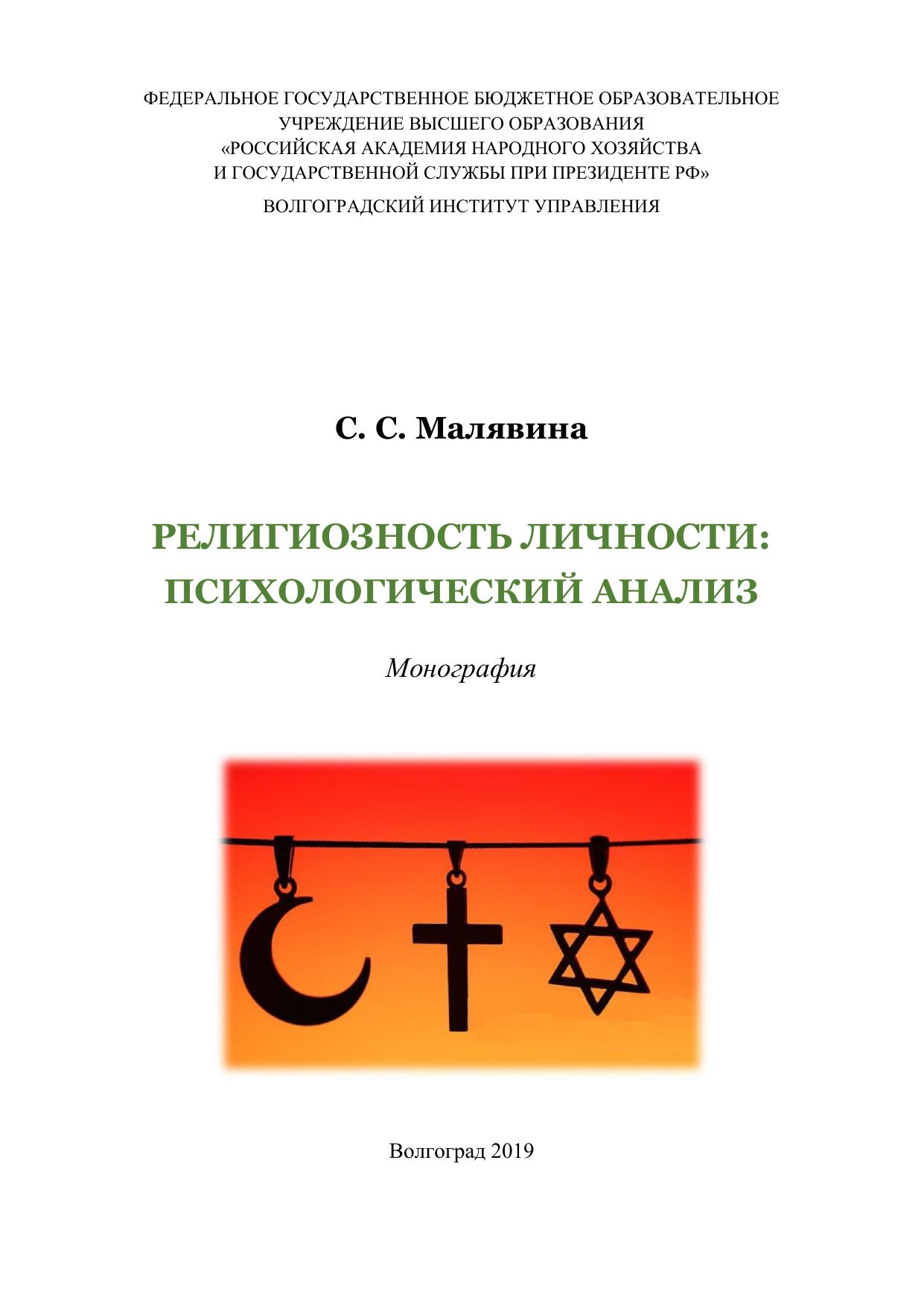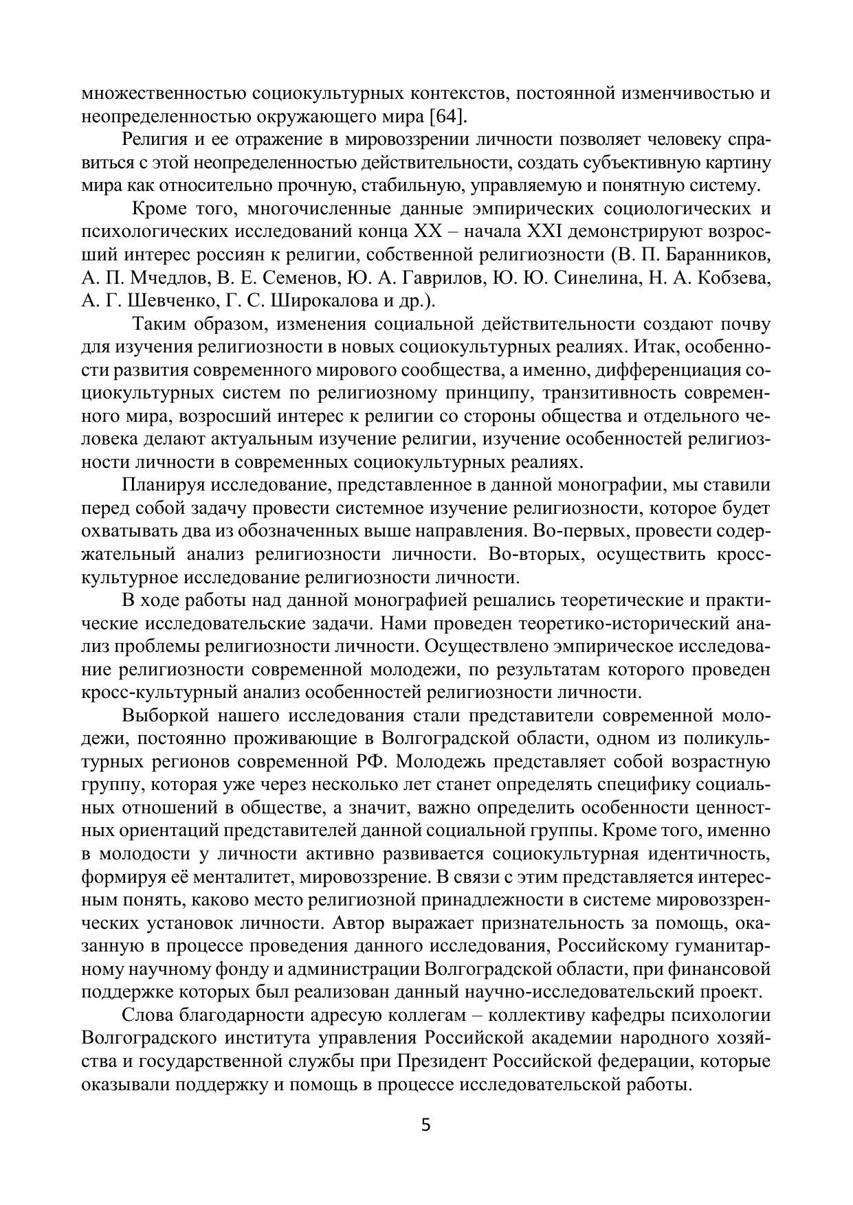 В монографии представлены результаты психологического исследования религиоз-ности личности. В работе раскрываются теоретические вопросы данной исследователь-ской темы: проблема религии и религиозной культуры в психологии, теоретические ос-новы проблемы религиозности личности. В тексте монографии представлены резуль-таты эмпирического изучения религиозности: ценностного, когнитивного, эмоциональ-ного и социально-поведенческого компонентов данного социально-психологического образования. Исследование выполнено на материале представителей двух религий – православного христианства и ислама, и сторонников атеистического мировоззрения. Адресуется психологам, философам, культурологам, социологам, широкому кругу читателей, интересующихся вопросами взаимосвязи культуры и психики.