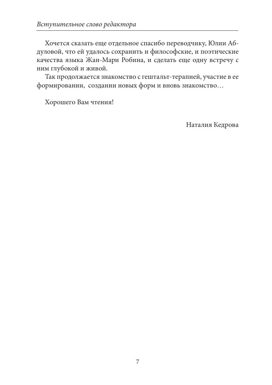 Жан-Мари Робин — клинический психолог, гештальт-терапевт, один из создателей Европейской ассоциации гештальт-терапии (ЕАГТ). В разное время был президентом ЕАГТ, директором Французского института гештальт-терапии, редактором и издателем французского журнала «Гештальт» и «Гештальт-тетради». Жан-Мари Робин — автор книг «Гештальт-терапия», «Формы гештальта», «Раскрывающееся Я», «Быть в присутствие другого», переведенных на испанский, английский и русский языки, преподаватель гештальт-терапии в разных странах обоих полушарий, в том числе в России и на Украине.