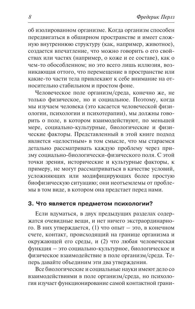 В данной работе основоположник гештальт-терапии выдающийся немецкий врач-психиатр и психотерапевт Фредерик Перлз и его соавторы впервые наиболее полно и систематизированно изложили основы своей теории, которая стала революционной для своего времени и не потеряла актуальности и в наши дни.