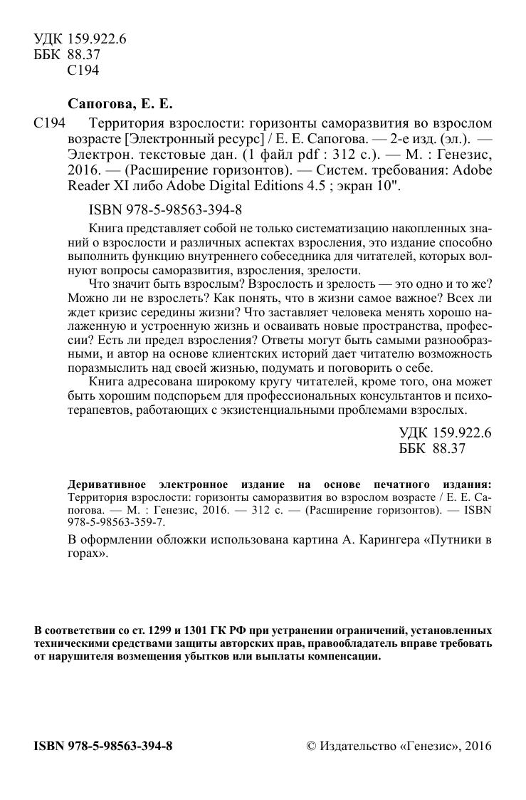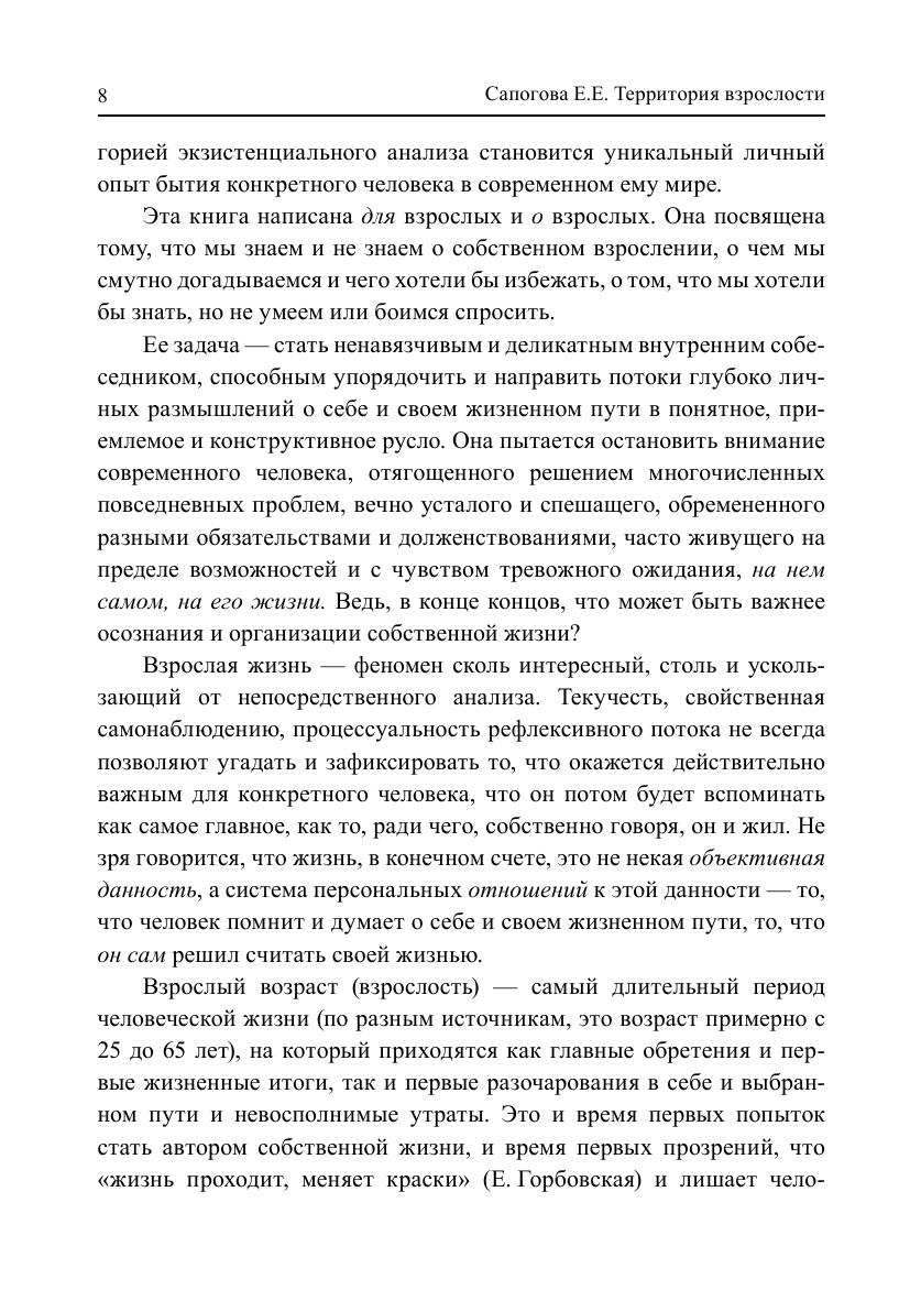 Книга представляет собой не только систематизацию накопленных знаний о взрослости и различных аспектах взросления, это издание способно выполнить функцию внутреннего собеседника для читателей, которых волнуют вопросы саморазвития, взросления, зрелости.