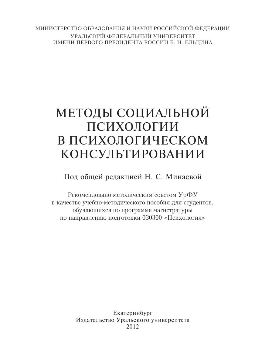 Методы социальной психологии в психологическом консультировании: учеб.-метод. пособие