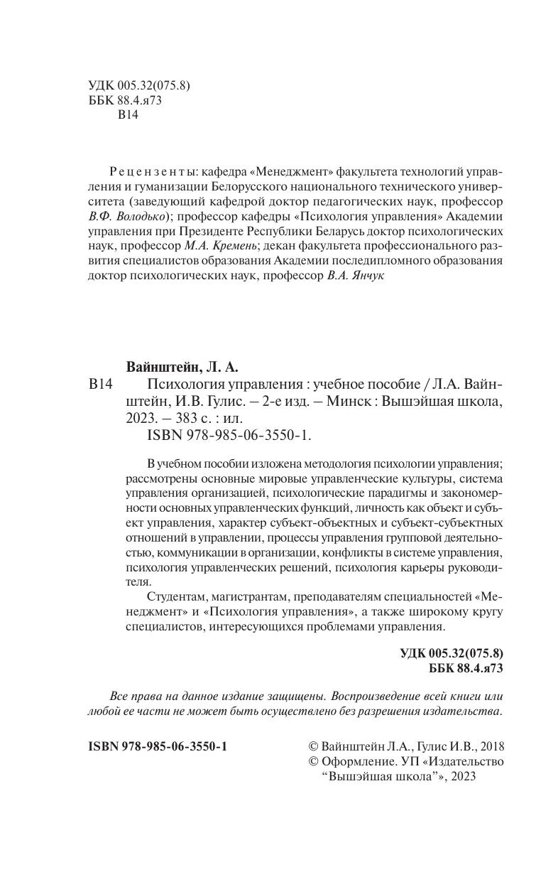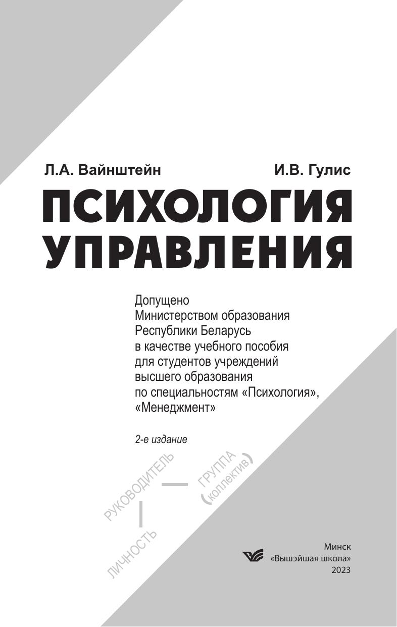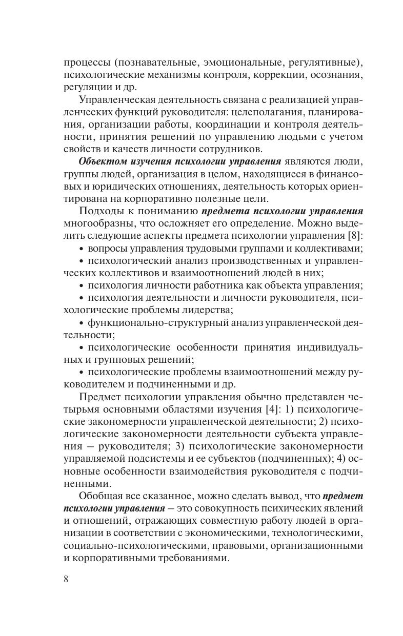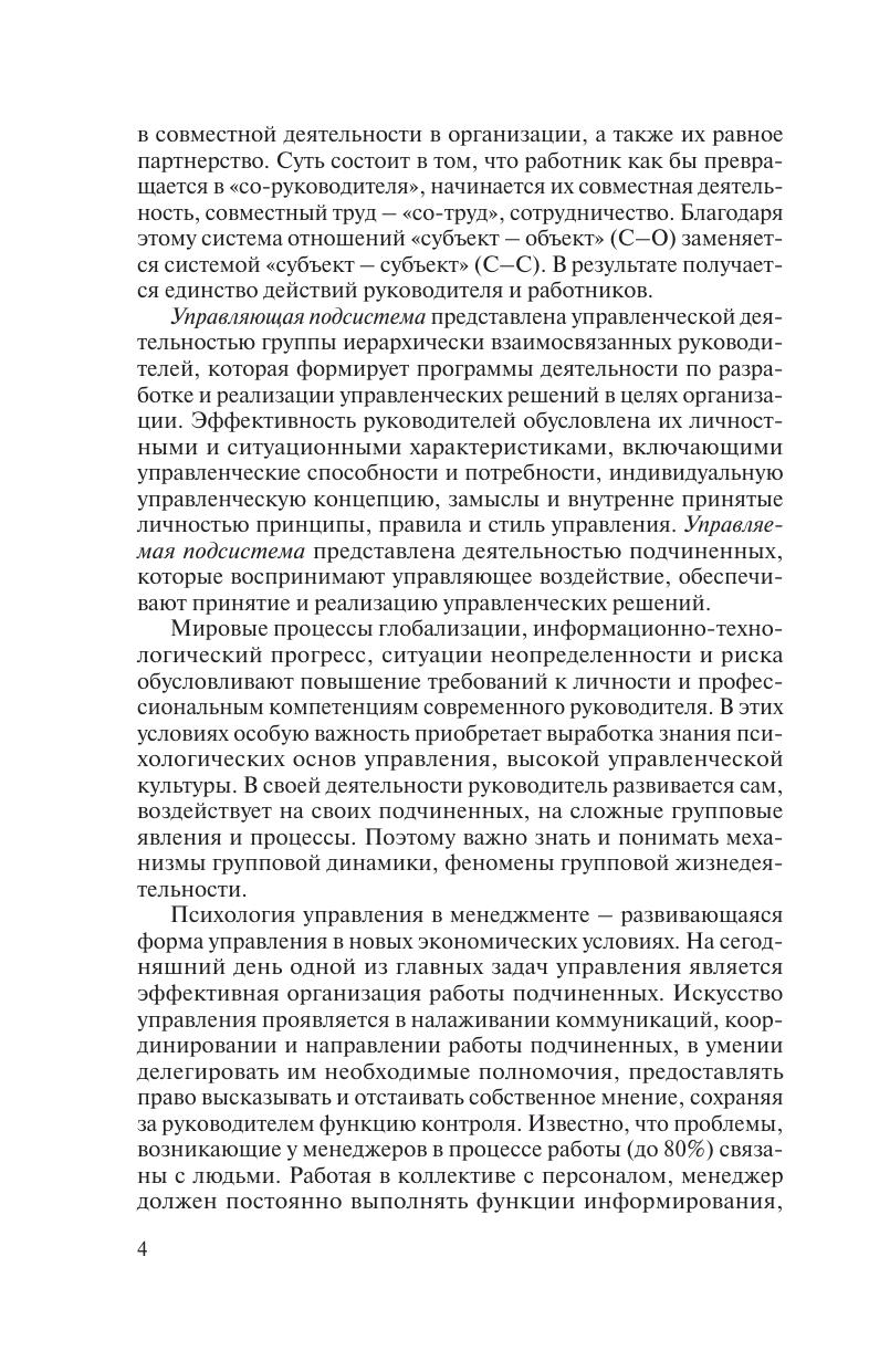 В учебном пособии изложена методология психологии управления; рассмотрены основные мировые управленческие культуры, система управления организацией, психологические парадигмы и закономерности основных управленческих функций, личность как объект и субъект управления, характер субъект-объектных и субъект-субъектных отношений в управлении, процессы управления групповой деятельностью, коммуникации в организации, конфликты в системе управления, психология управленческих решений, психология карьеры руководителя. Студентам, магистрантам, преподавателям специальностей «Менеджмент» и «Психология управления», а также широкому кругу специалистов, интересующихся проблемами управления.