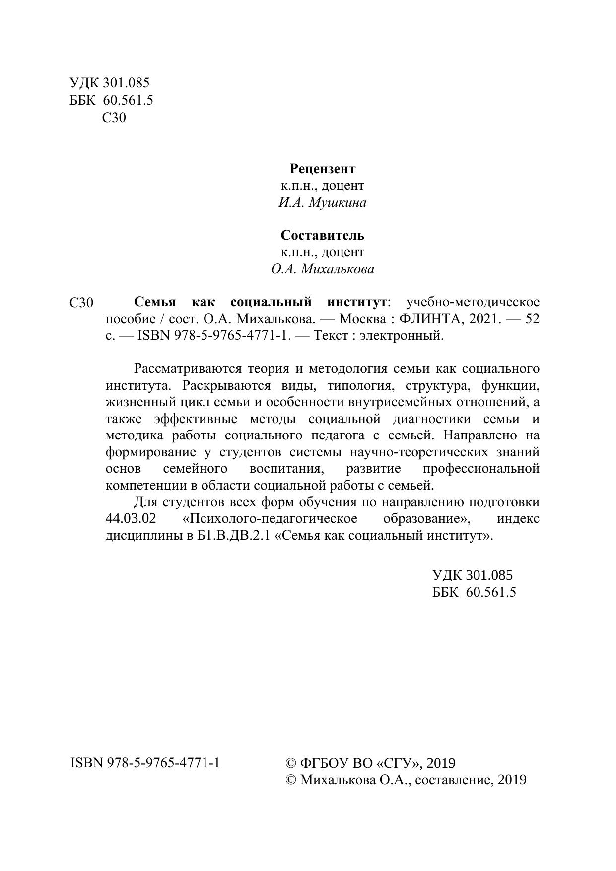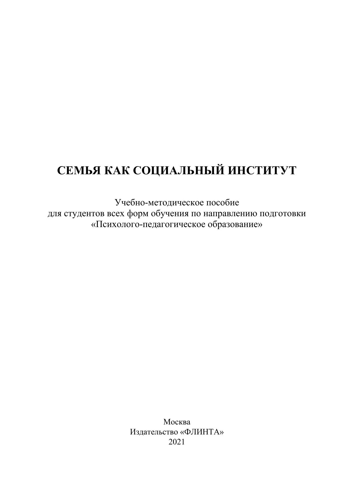 Для студентов всех форм обучения по направлению подготовки 44.03.02 «Психолого-педагогическое образование», индекс дисциплины в Б1.В.ДВ.2.1 «Семья как социальный институт».
