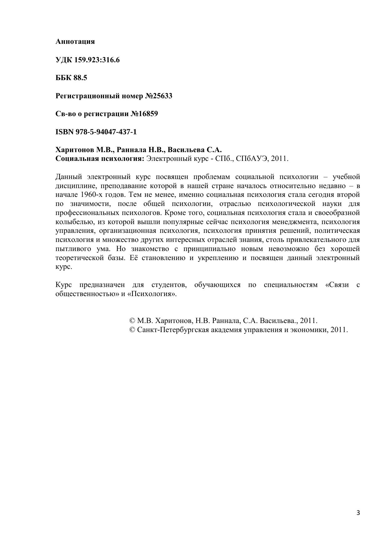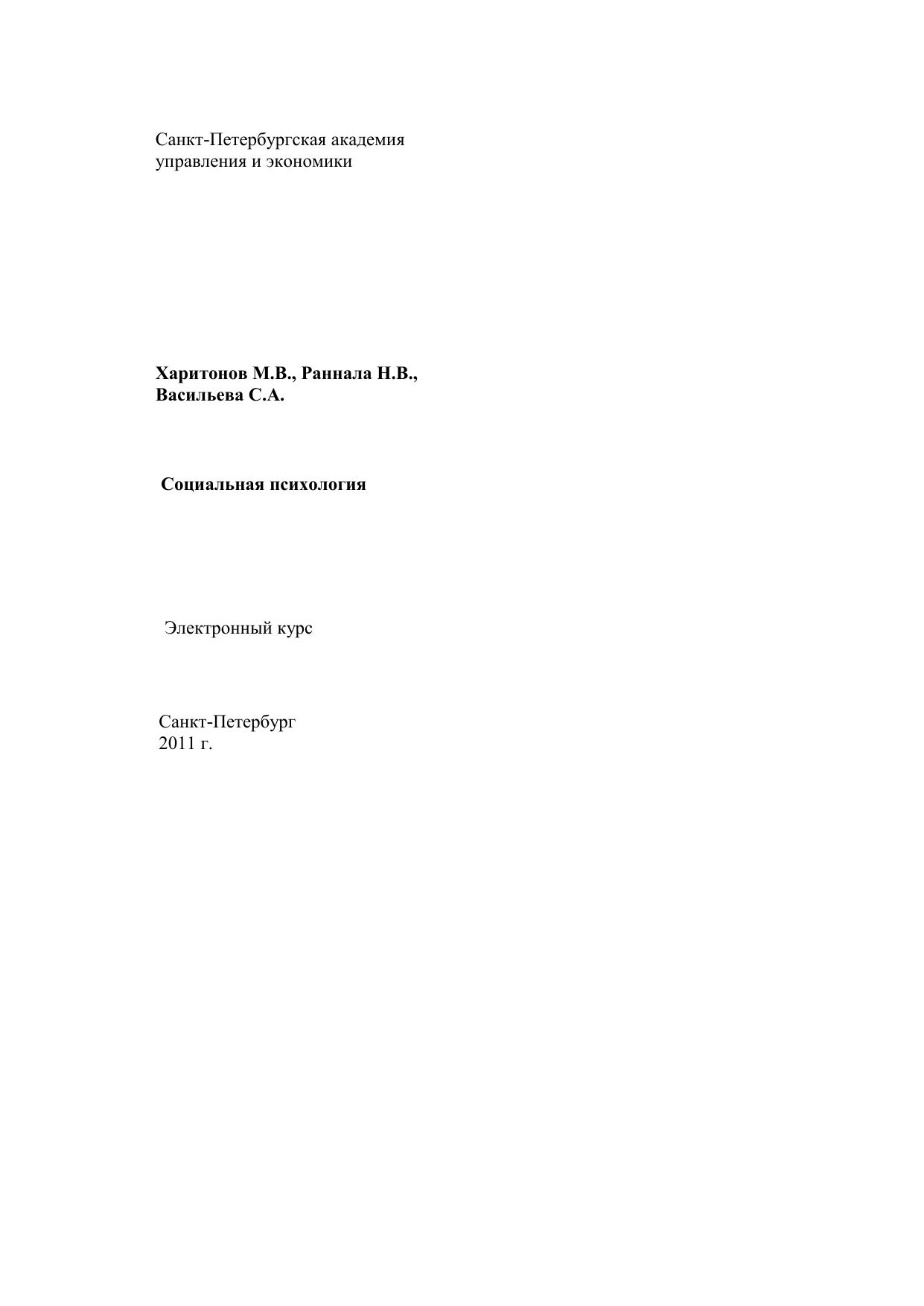 Данный электронный курс посвящен проблемам социальной психологии – учебной дисциплине, преподавание которой в нашей стране началось относительно недавно – в начале 1960-х годов. Тем не менее, именно социальная психология стала сегодня второй по значимости, после общей психологии, отраслью психологической науки для профессиональных психологов. Кроме того, социальная психология стала и своеобразной колыбелью, из которой вышли популярные сейчас психология менеджмента, психология управления, организационная психология, психология принятия решений, политическая психология и множество других интересных отраслей знания, столь привлекательного для пытливого ума. Но знакомство с принципиально новым невозможно без хорошей теоретической базы. Её становлению и укреплению и посвящен данный электронный курс. Курс предназначен для студентов, обучающихся по специальностям «Связи с общественностью» и «Психология».