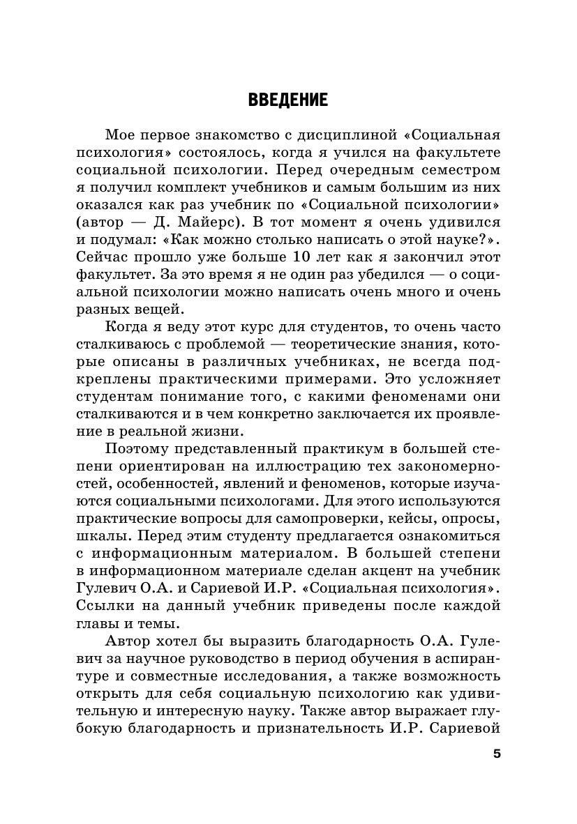 Данный практикум ориентирован на студентов, которые приступают к изучению курса «Социальная психология». В нем представлены разделы, относящиеся к различным аспектам социально-психологического знания: теоретические основы, методы, социальное познание, коммуникация и другие. В разделы включены: информационный материал, вопросы для самопроверки, литература, рекомендованная студентам, а также задания, которые помогут усвоить основные понятия, термины и определения, описанные в информационном материале. Отдельно в каждый раздел включены различные опросники, шкалы, кейсы и прочие задания.