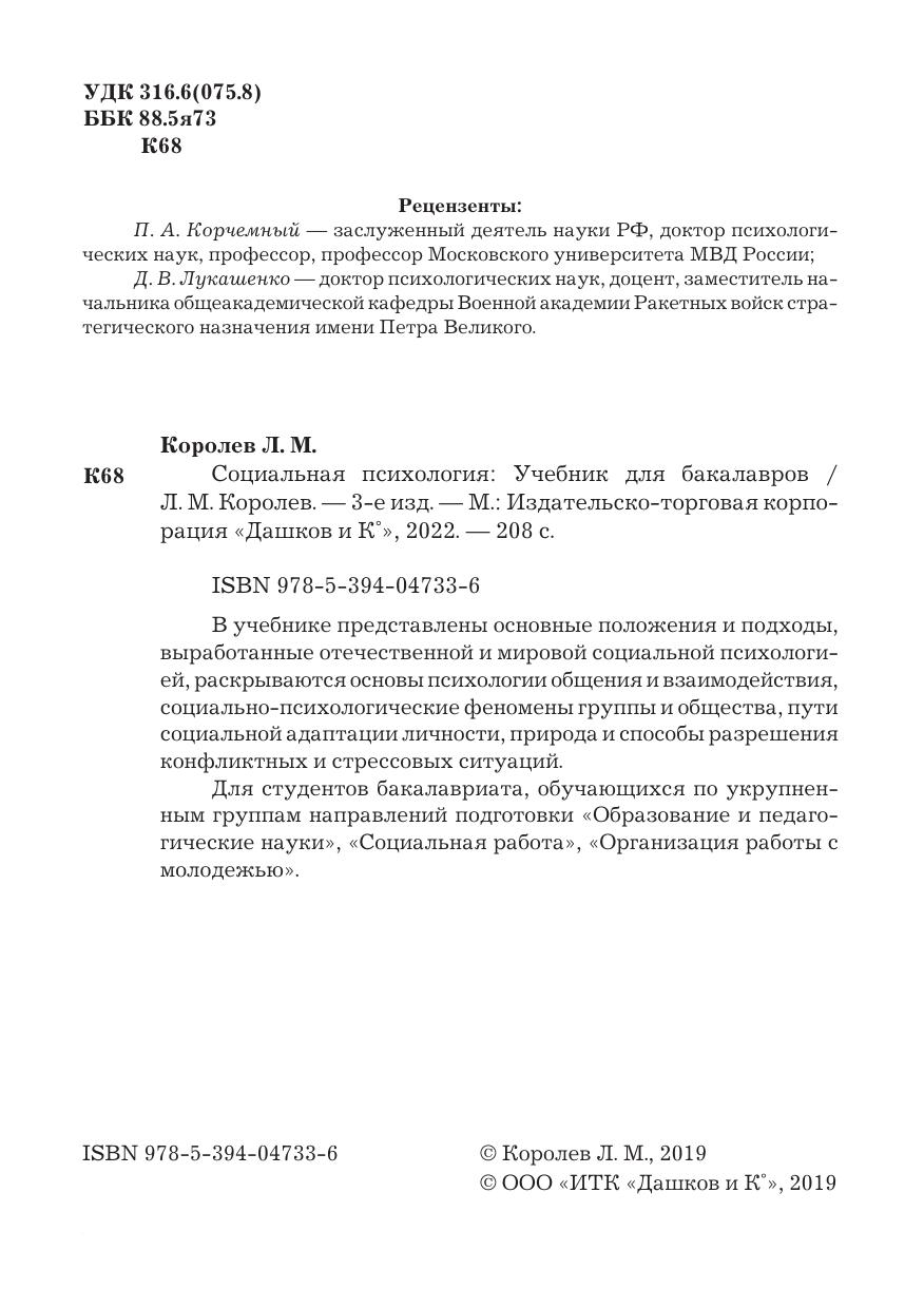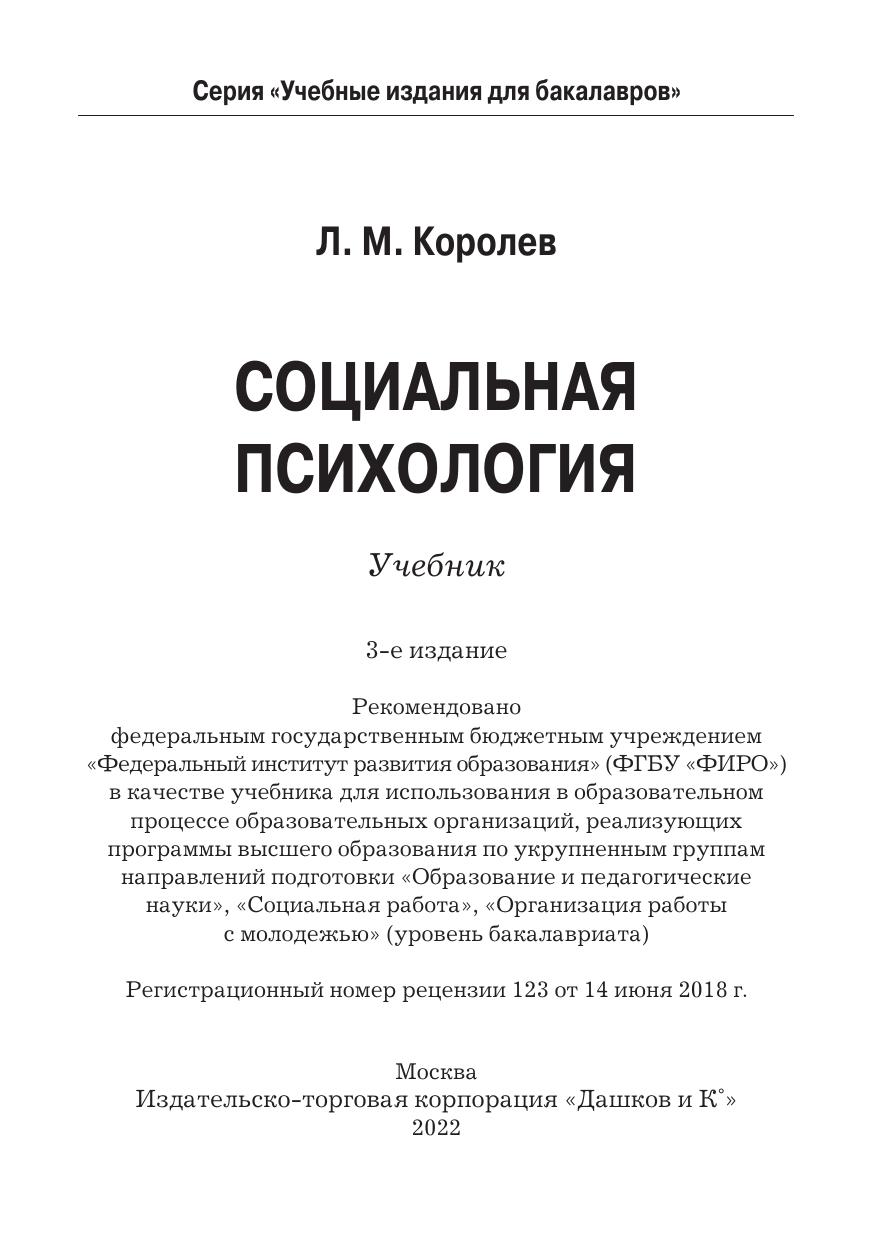 В учебнике представлены основные положения и подходы, выработанные отечественной и мировой социальной психологией, раскрываются основы психологии общения и взаимодействия, социально-психологические феномены группы и общества, пути социальной адаптации личности, природа и способы разрешения конфликтных и стрессовых ситуаций. Для студентов бакалавриата, обучающихся по укрупненным группам направлений подготовки «Образование и педагогические науки», «Социальная работа», «Организация работы с молодежью».