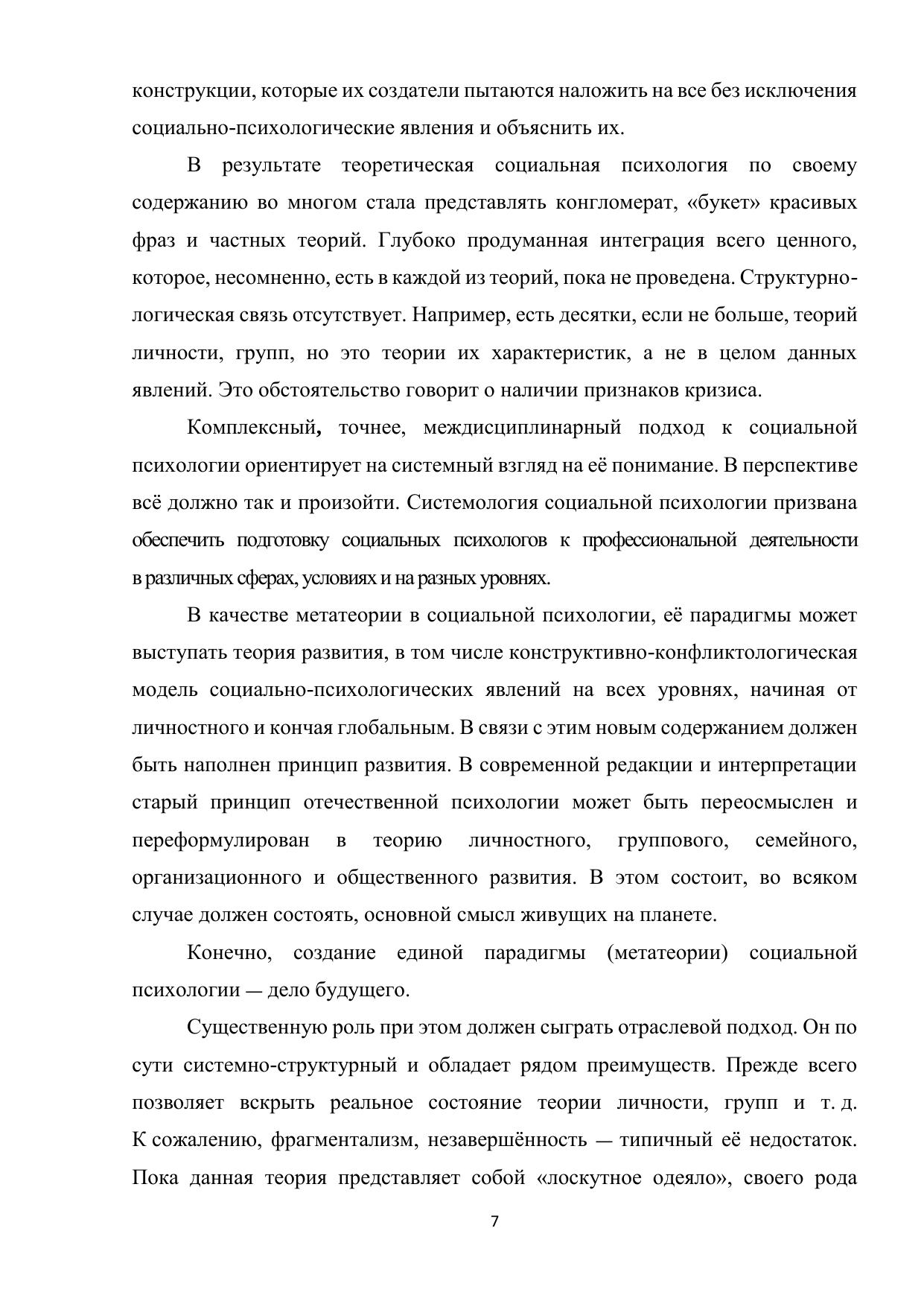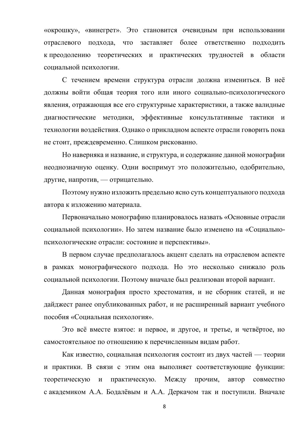 Рассматривается широкий круг вопросов: история становления, структура, предмет, состояние и перспективы развития современной отечественной социальной психологии, а также сущность отрасли.