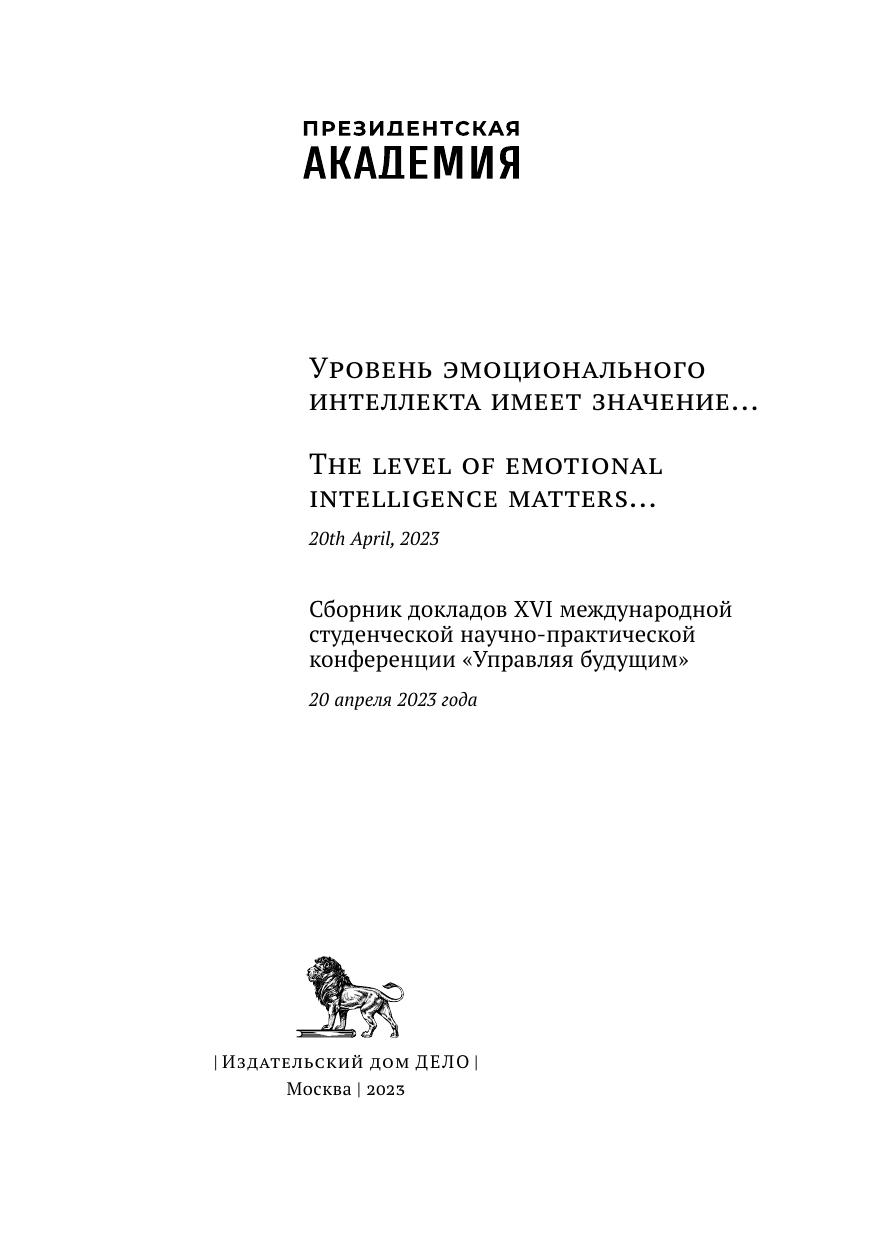 Уровень эмоционального интеллекта имеет значение... The level of emotional intelligence matters... Сборник докладов XVI международной студенческой научно-практической конференции «Управляя будущим»