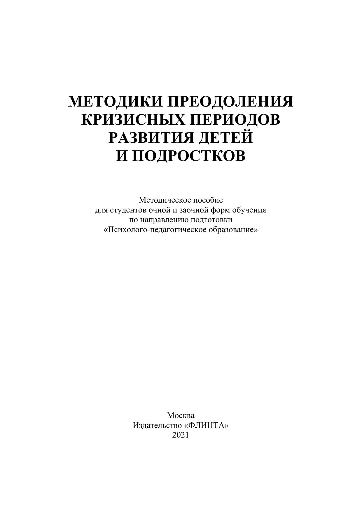 Методики преодоления кризисных периодов развития детей и подростков