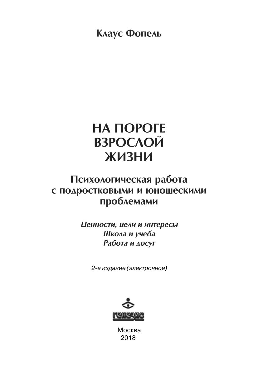 На пороге взрослой жизни: Психологическая работа с подростковыми и юношескими проблемами. Ценности, цели и интересы. Школа и учеба. Работа и досуг