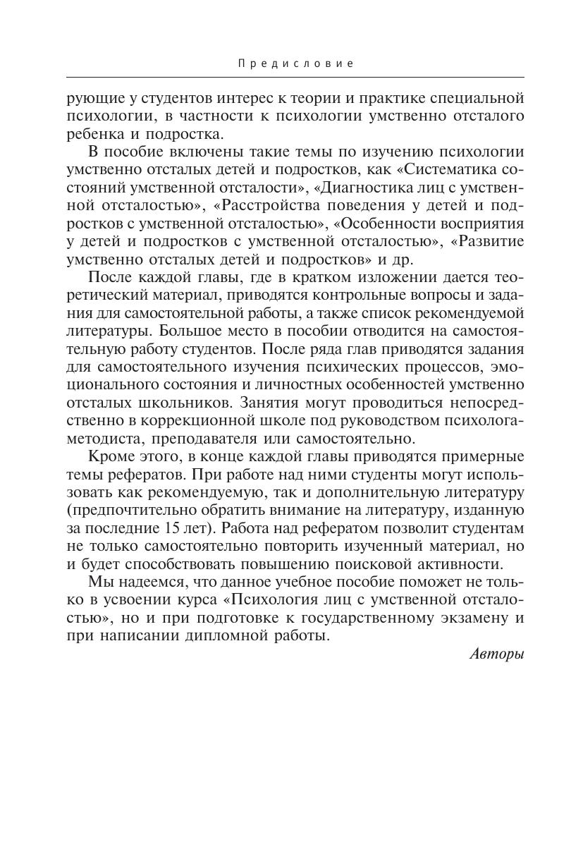 Специальному психологу необходимо знать своеобразие психического развития умственно отсталого ребенка. Знание особенностей психического развития поможет психологу квалифицированно решать задачи психологической коррекции и сопровождения учеников специальной (коррекционной) школы VIII вида. Семинарские и практические занятия, формирующие у студентов интерес к теории и практике специальной психологии, способствуют углублению знаний в этой области.В пособии представлены следующие разделы для изучения психологии умственно отсталых детей и подростков — «Систематика состояний умственной отсталости», «Диагностика лиц с умственной отсталостью», «Расстройства поведения у детей и подростков с умственной отсталостью», «Особенности восприятия у детей и подростков с умственной отсталостью», «Развитие умственно отсталых детей и подростков» и др. После каждой главы, где в кратком изложении дается теоретический материал, приводятся вопросы и задания для самостоятельной работы, а также список рекомендуемой литературы. Пособие адесовано студентам медицинских и педагогических вузов, аспирантам, дефектологам и практикующим специалистам.