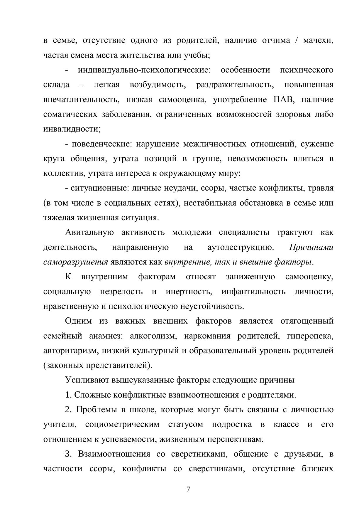 Психолого-педагогическое сопровождение обучающихся со склонностью к антивитальному поведению