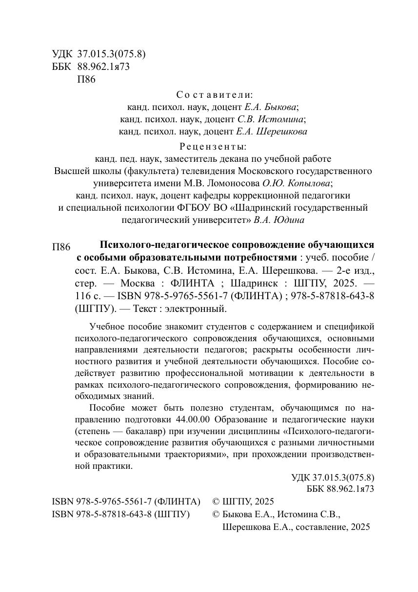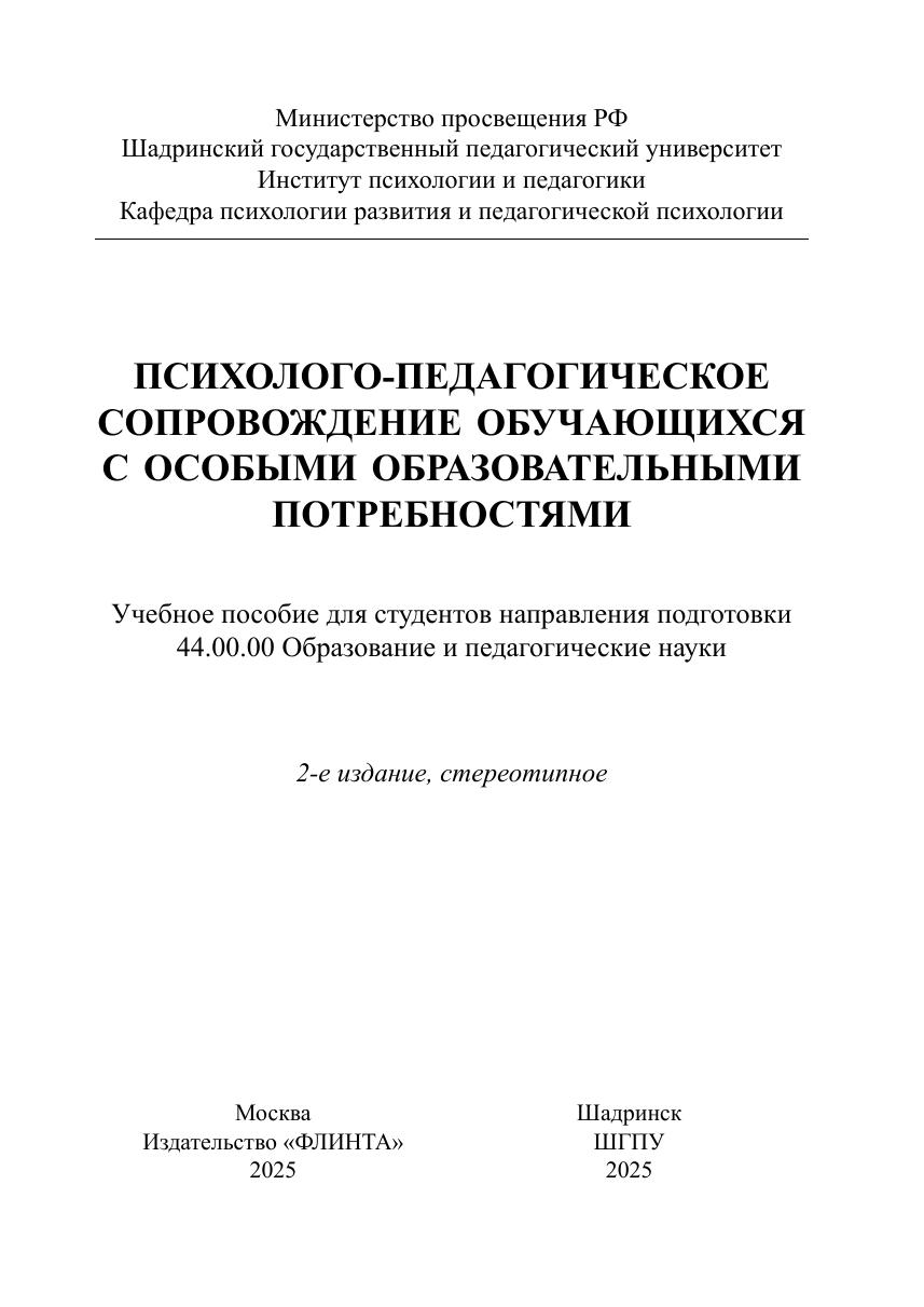 Пособие может быть полезно студентам, обучающимся по направлению подготовки 44.00.00 Образование и педагогические науки (степень — бакалавр) при изучении дисциплины «Психолого-педагогическое сопровождение развития обучающихся с разными личностными и образовательными траекториями», при прохождении производственной практики.