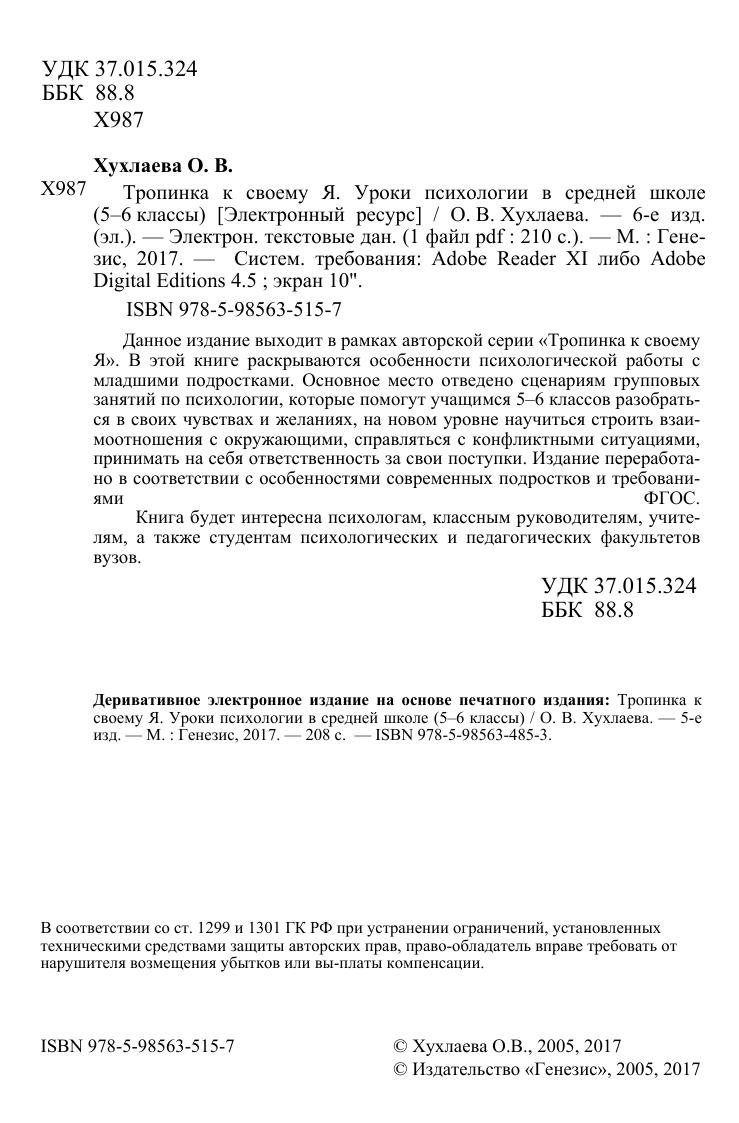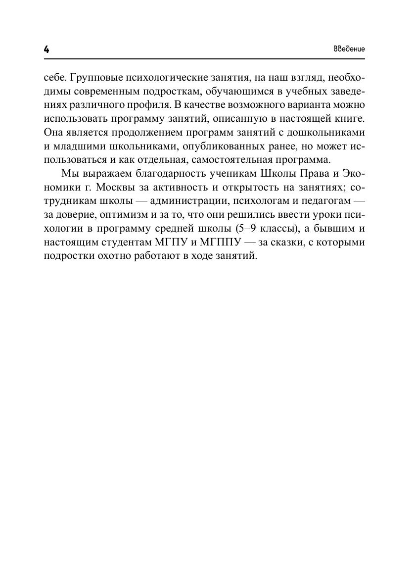 Данное издание выходит в рамках авторской серии «Тропинка к своему Я». В этой книге раскрываются особенности психологической работы с младшими подростками. Основное место отведено сценариям групповых занятий по психологии, которые помогут учащимся 5–6 классов разобраться в своих чувствах и желаниях, на новом уровне научиться строить взаимоотношения с окружающими, справляться с конфликтными ситуациями, принимать на себя ответственность за свои поступки. Издание переработано в соответствии с особенностями современных подростков и требованиями ФГОС.