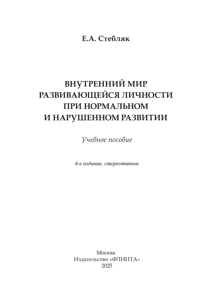 Внутренний мир развивающейся личности при нормальном и нарушенном развитии