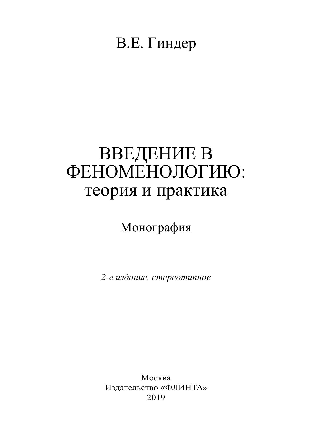 Введение в феноменологию: теория и практика: монография