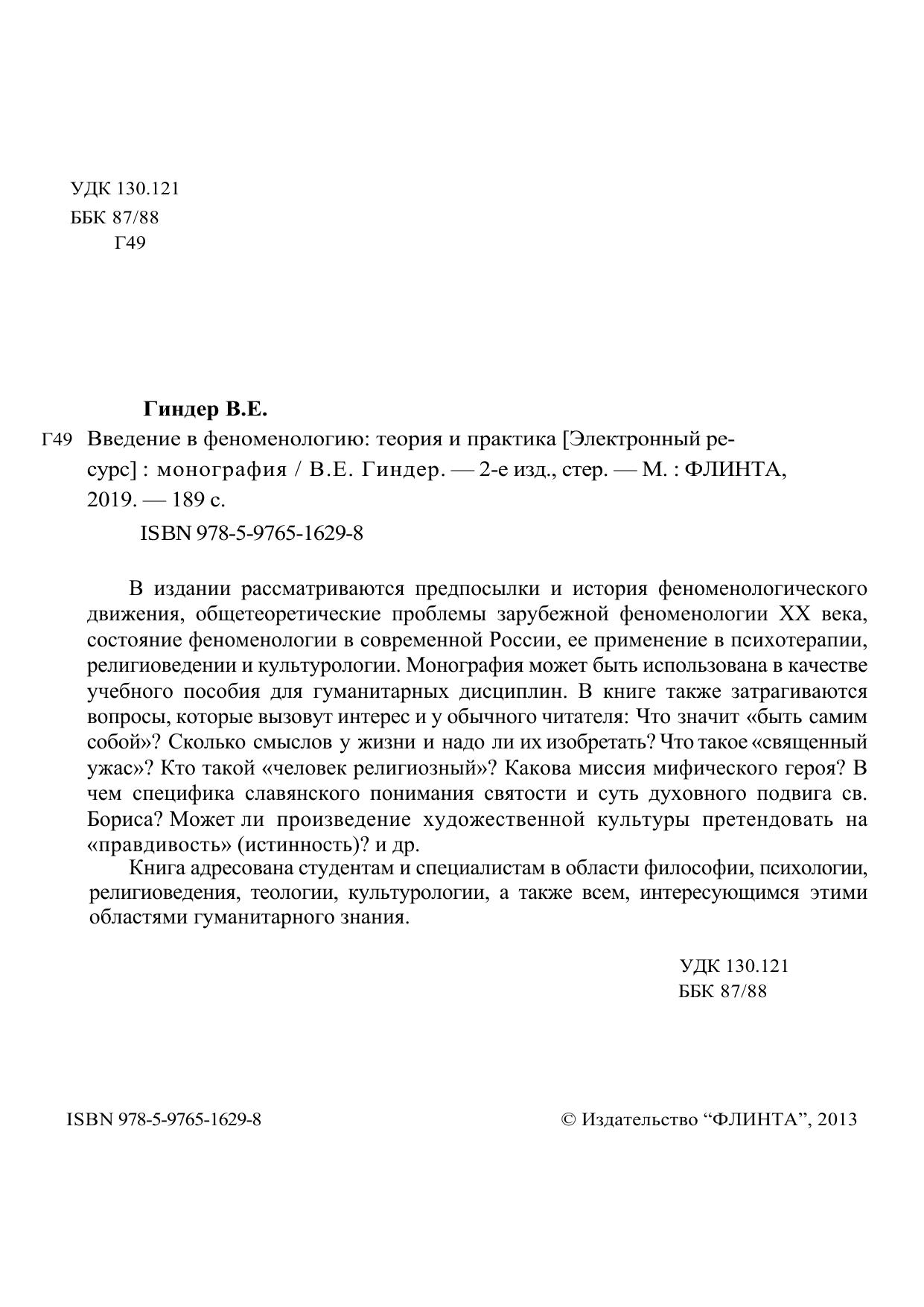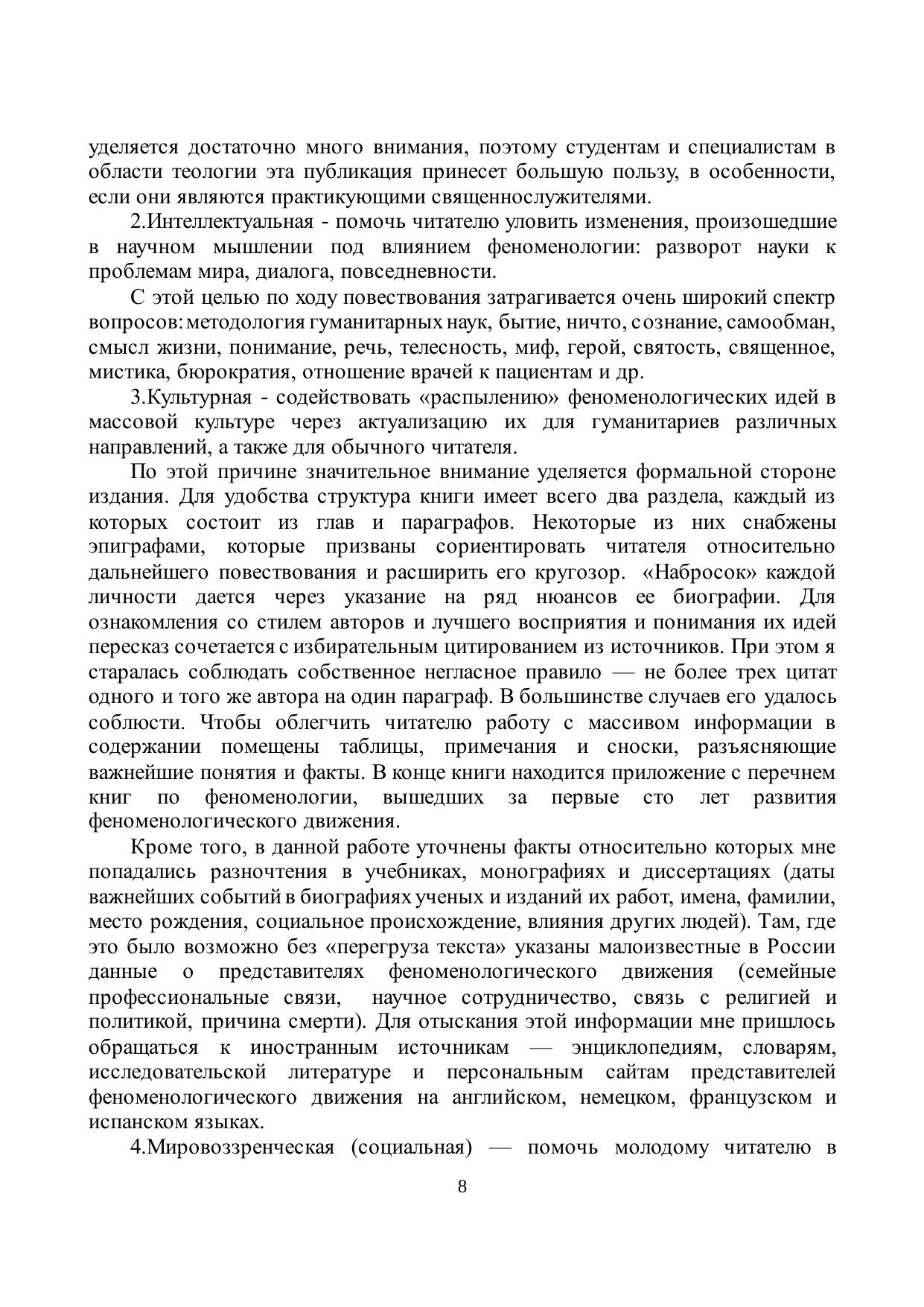 В издании рассматриваются предпосылки и история феноменологического движения, общетеоретические проблемы зарубежной феноменологии XX века, состояние феноменологии в современной России, ее применение в психотерапии, религиоведении и культурологии. Монография может быть использована в качестве учебного пособия для гуманитарных дисциплин. В книге также затрагиваются вопросы, которые вызовут интерес и у обычного читателя: Что значит «быть самим собой»? Сколько смыслов у жизни и надо ли их изобретать? Что такое «священный ужас»? Кто такой «человек религиозный»? Какова миссия мифического героя? В чем специфика славянского понимания святости и суть духовного подвига св. Бориса? Может ли произведение художественной культуры претендовать на «правдивость» (истинность)? и др. Книга адресована студентам и специалистам в области философии, психологии, религиоведения, теологии, культурологии, а также всем, интересующимся этими областями гуманитарного знания.
