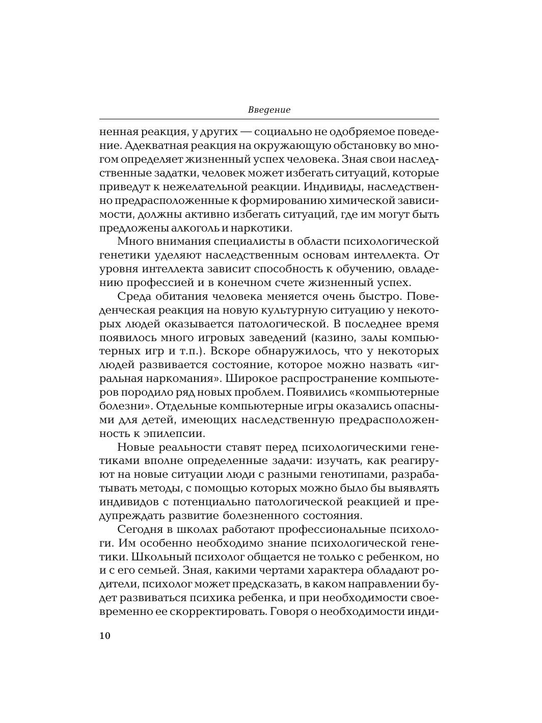 В книге рассматриваются проблемы психогенетики — нового направления в науке, пограничной области знания между психологией и генетикой. Представлены основные задачи современной психологической генетики: изучать, как реагируют на новые ситуации люди с разными генотипами, разрабатывать методы анализа поведения человека, его интеллекта. Для студентов психологических факультетов вузов.