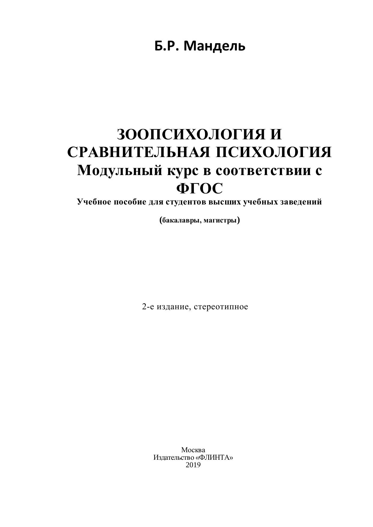 Зоопсихология и сравнительная психология. Модульный курс в соответствии с ФГОС