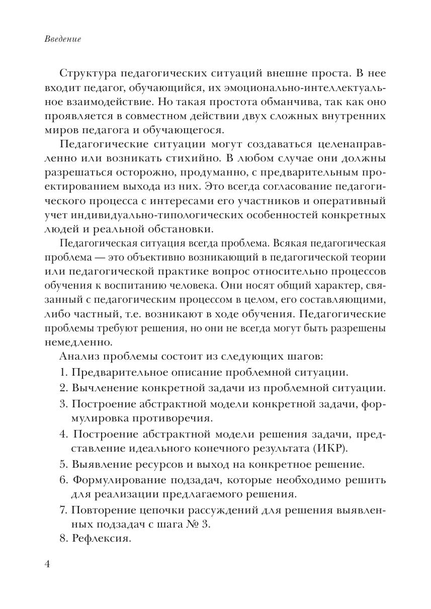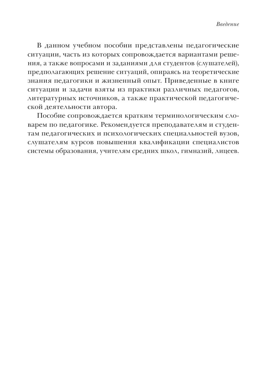 знания и жизненный опыт. Приведенные в книге ситуации и задачи взяты из практики различных педагогов, литературных источников, а также практической педагогической деятельности автора. Пособие сопровождается кратким терминологическим