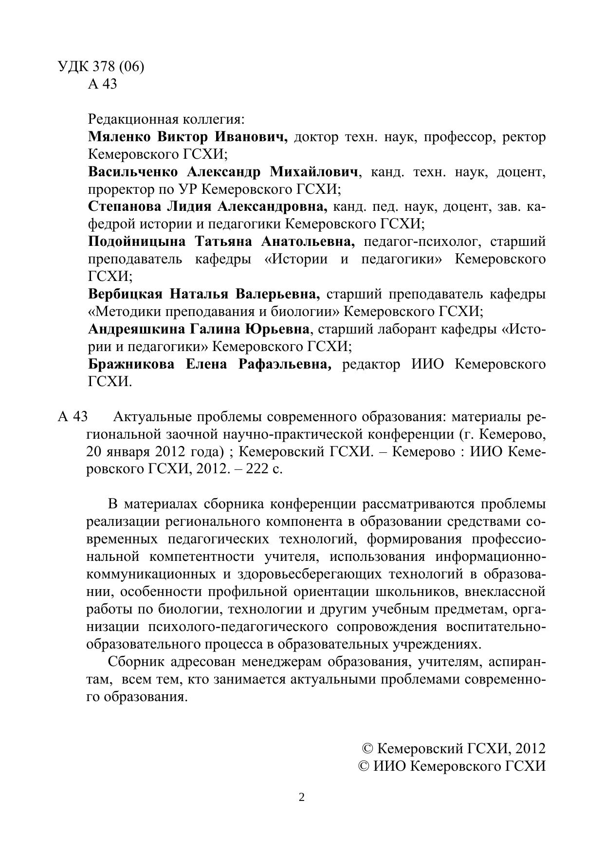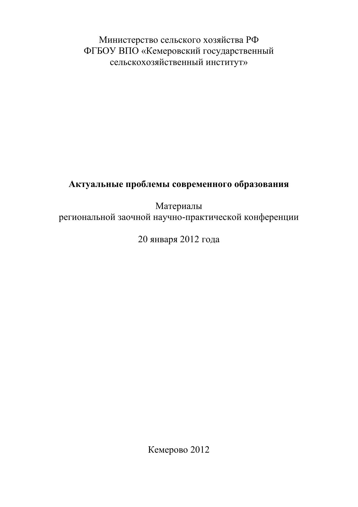 Актуальные проблемы современного образования: материалы региональной заочной научно-практической конференции (г. Кемерово, 20 января 2012 года)
