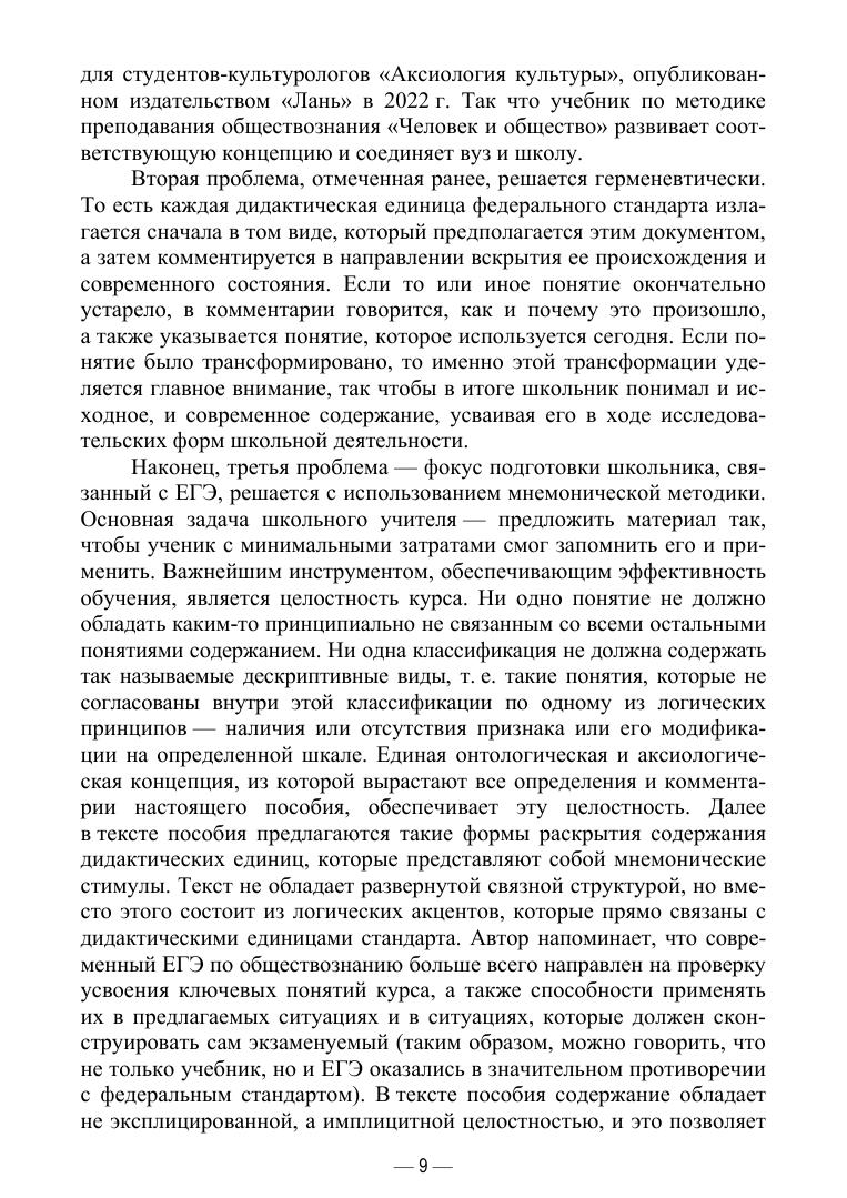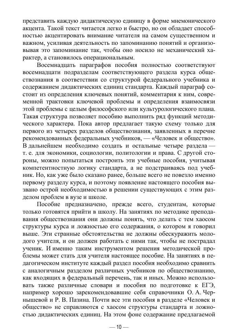Книга не имеет аналогов в системе учебников и учебных пособий по обществознанию в современной России. В ней представлена целостная концепция первого раздела курса обществознания для средней школы — человек и общество. 18 параграфов книги отражают 18 тем этого раздела. Материал изложен в соответствии с требованиями Федерального государственного образовательного стандарта по Педагогическому образованию, а также в соответствии с современными представлениями о бытии, познании, человеке и его месте в космосе, его взаимодействии с социальным окружением и культурой. В основу концепции положено авторское учение о ценностях, что способствует организации образовательного процесса как единства обучения и воспитания, так как познанная ценность есть то, что определяет наше поведение. Книга рекомендуется для студентов, обучающихся по направлению подготовки «Педагогическое образование» (Обществознание).
