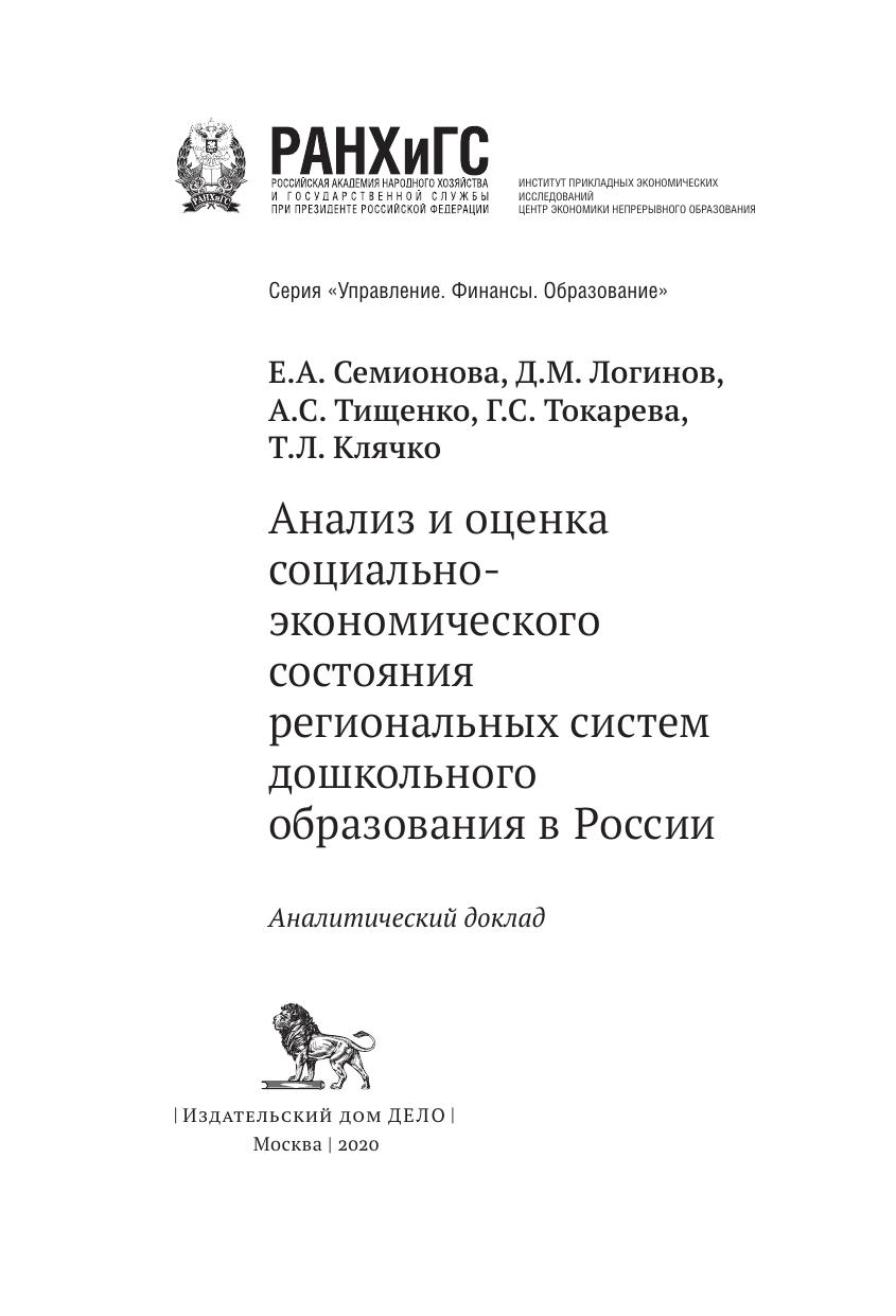 Анализ и оценка социально-экономического состояния региональных систем дошкольного образования в России