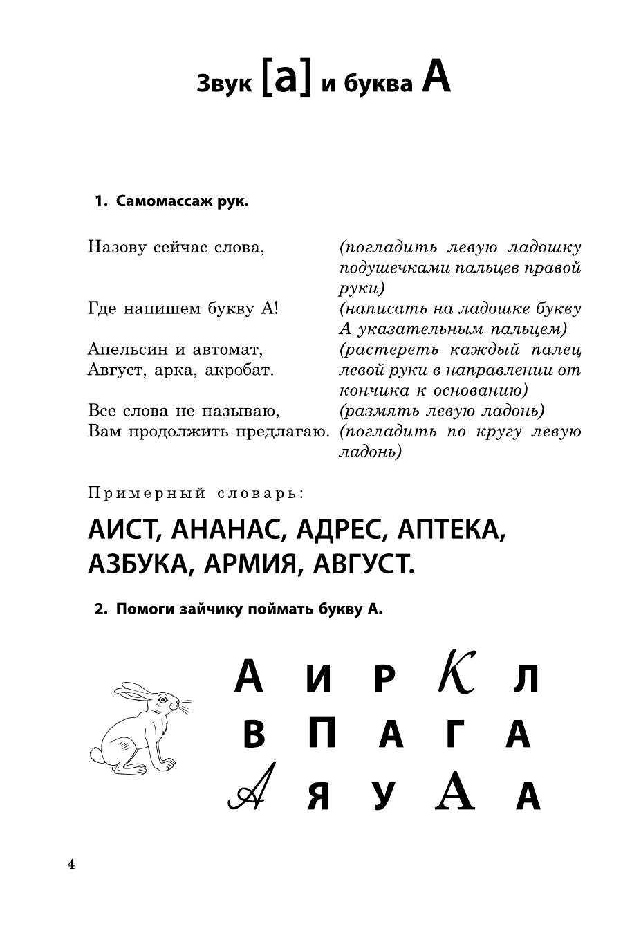 Книга поможет ребёнку усвоить азбуку, научит соотносить звук речи и букву, находить место звука в слове, а эти знания - фундамент для успешного овладения грамотой. Знакомство с каждым звуком речи и обозначающей его буквой превратится для ребёнка в увлекательную и полезную игру благодаря чтению забавных авторских стихов и выполнению движений самомассажа рук. Для взрослого книга станет незаменимой и верной помощницей в создании у дошкольника позитивного настроя по отношению к занятиям чтением и письмом, в подготовке руки ребёнка к письму.