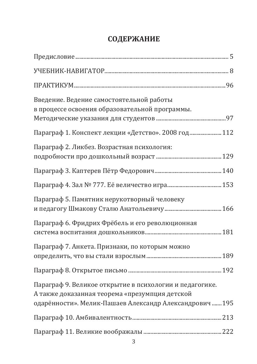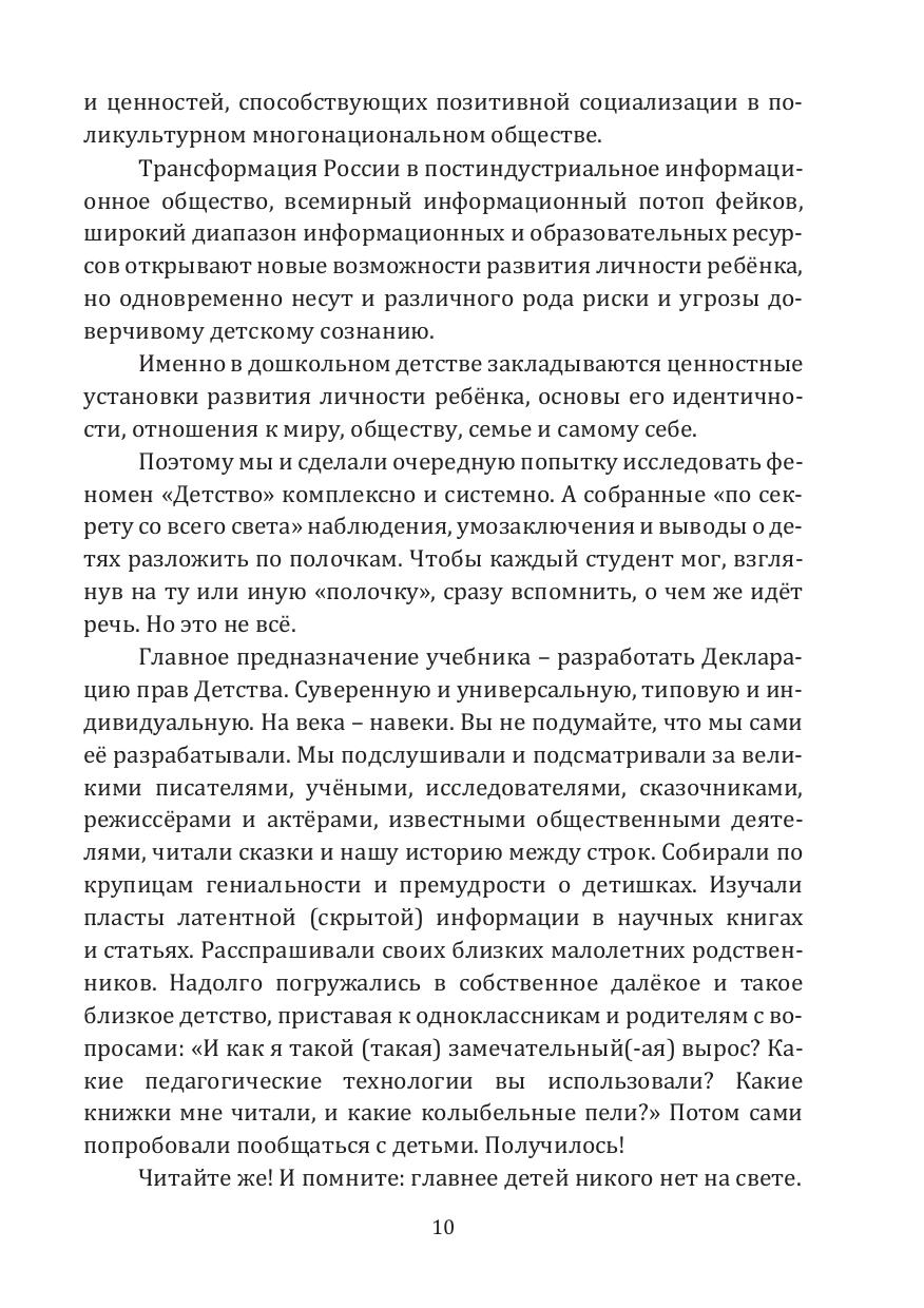 В учебнике и практикуме комплексно и системно исследован феномен детства. Автор ориентирует будущих педагогов на непознанные ещё сокровища человеческого сознания, на неосвоенные ещё наукой возможности мышления, которые ярко и наглядно представлены в детях-дошкольниках.