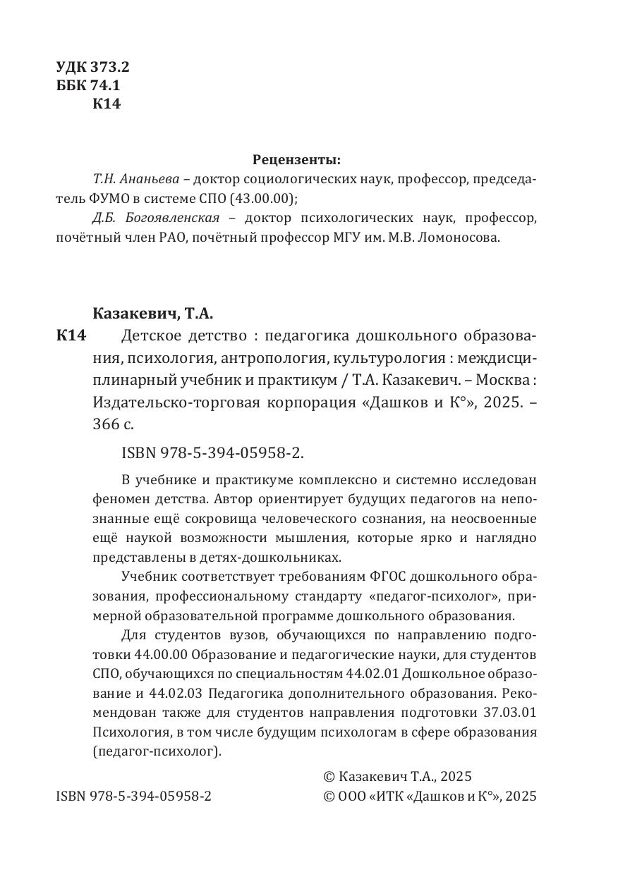 Детское детство. Педагогика дошкольного образования, психология...: Междисциплинарный учебник и практикум Казакевич Т. А.