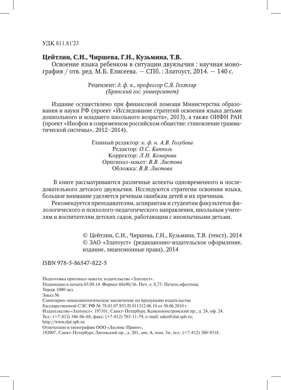 В книге рассматриваются различные аспекты одновременного и последовательного детского двуязычия. Исследуются стратегии освоения языка, большое внимание уделяется речевым ошибкам детей и их причинам. Рекомендуется преподавателям, аспирантам и студентам факультетов филологического и психолого-педагогического направления, школьным учителям и воспитателям детских садов, работающим с иноязычными детьми.