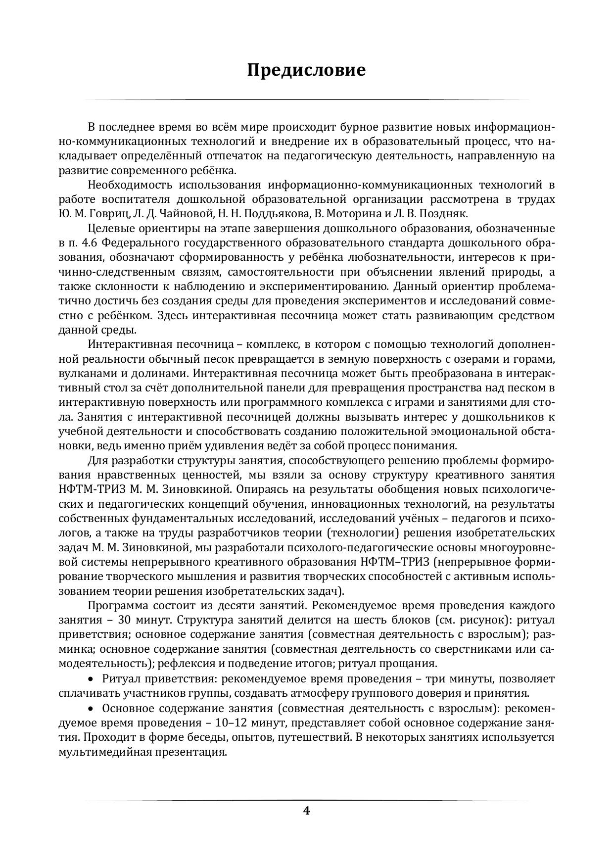 В пособии рассматривается проблема познавательного развития детей старшего дошкольного возраста. Для этого в работе приводятся 10 взаимосвязанных занятий, составленных по авторской методике на основе креативного урока НФТМ-ТРИЗ М. М. Зиновкиной. Каждое занятие снабжено конспектом и рекомендациями для проведения, что позволяет использовать пособие без привлечения дополнительной литетуры. Занятия составлены с учетом требований Федерального государственного образовательного стандарта дошкольного образования