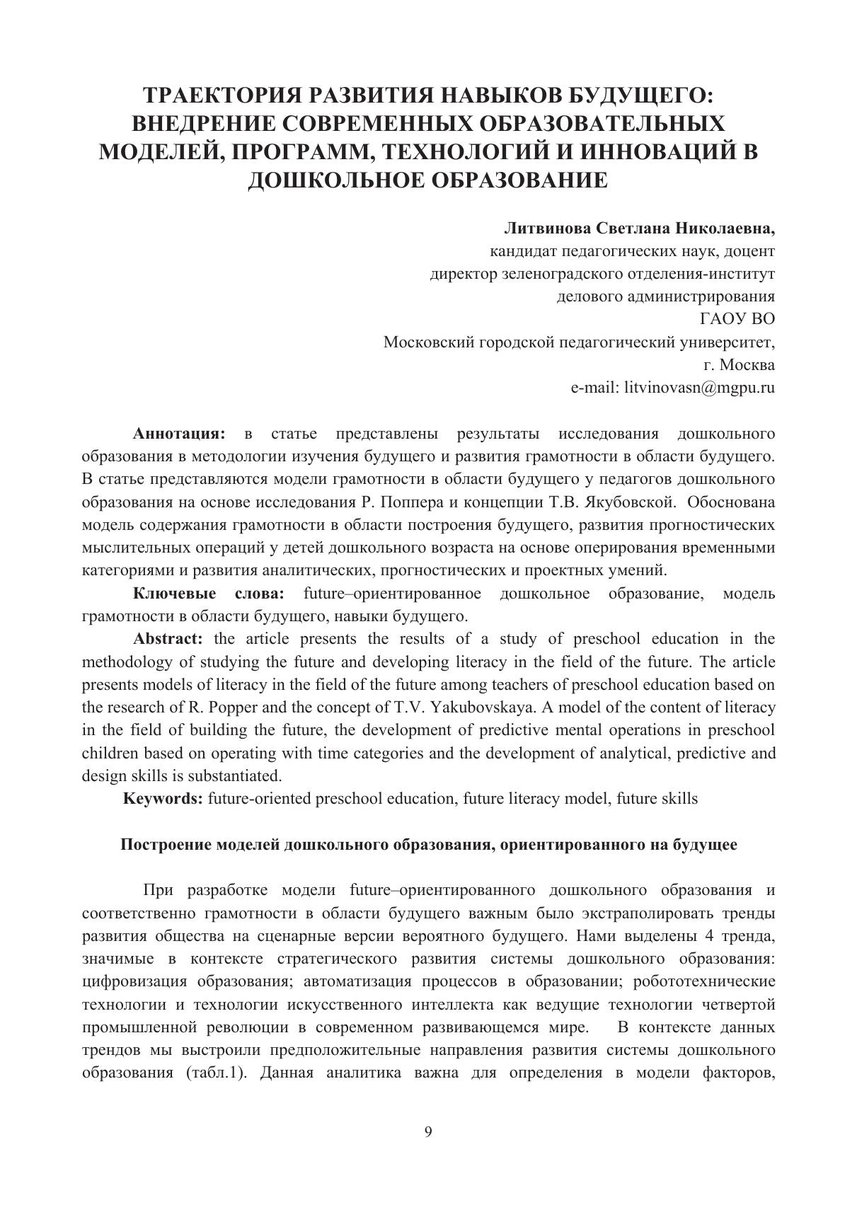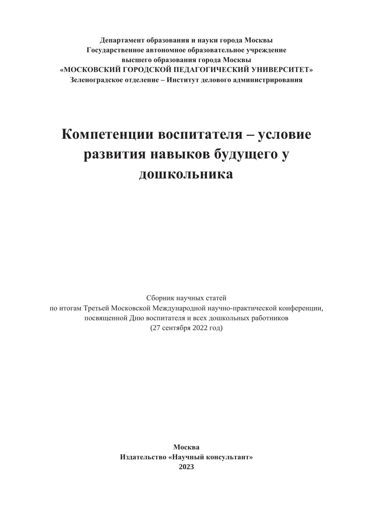 Компетенции воспитателя – условие развития навыков будущего у дошкольника. Сборник научных статей по итогам Третьей Московской Международной научно-практической конференции, посвященной Дню воспитателя и всех дошколных работников (27 сентября 2022 год)