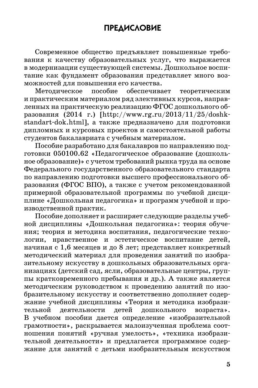 Пособие обеспечивает теоретическим и практическим материалом ряд элективных курсов, направленных на практическую реализацию ФГОС дошкольного образования. Представленная методика дополняет содержание учебных дисциплин «Дошкольная педагогика» и «Теория и методика изобразительной деятельности детей дошкольного возраста».