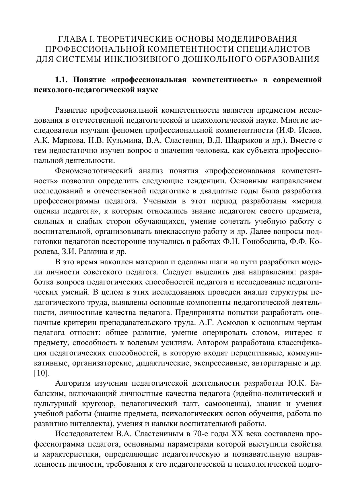 Моделирование профессиональной компетентности специалистов для системы инклюзивного дошкольного образования