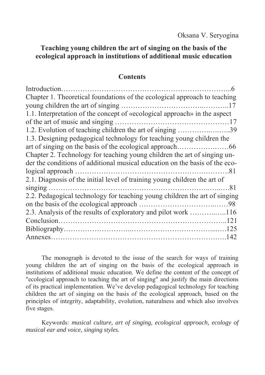 Обучение младших школьников певческому искусству на основе экологического подхода в учреждениях дополнительного музыкального образования