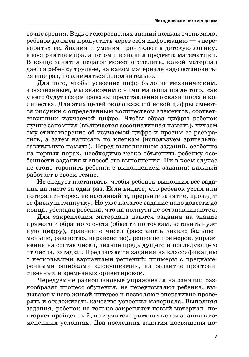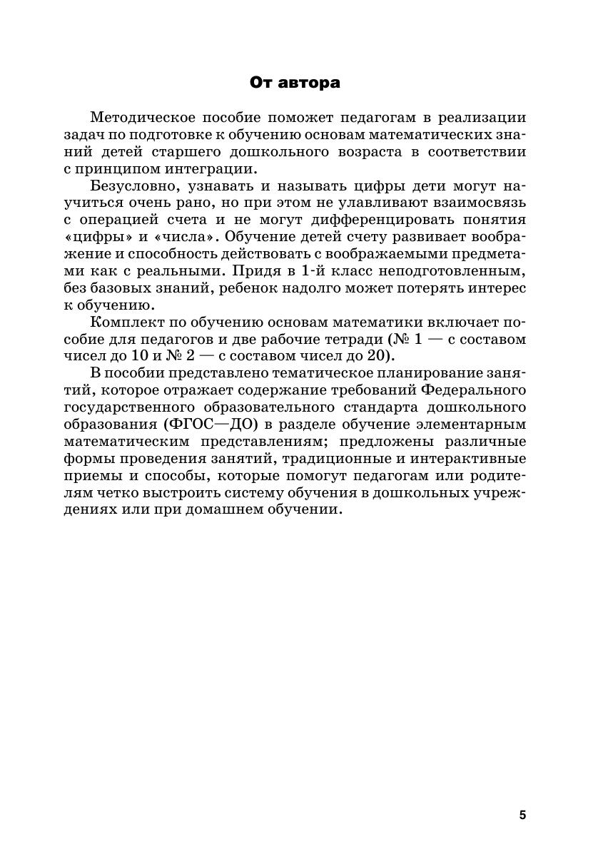 дошкольного возраста в увлекательной форме постичь основы математических знаний в соответствии с принципом ин теграции. Пособие соответствует требованиям Федерального го сударственного образовательного стандарта дошкольного образования (ФГОС—ДО). Выполнение предложенных упражнений с поэтапным усложнением материала позволит успешно подготовить детей к школе.
