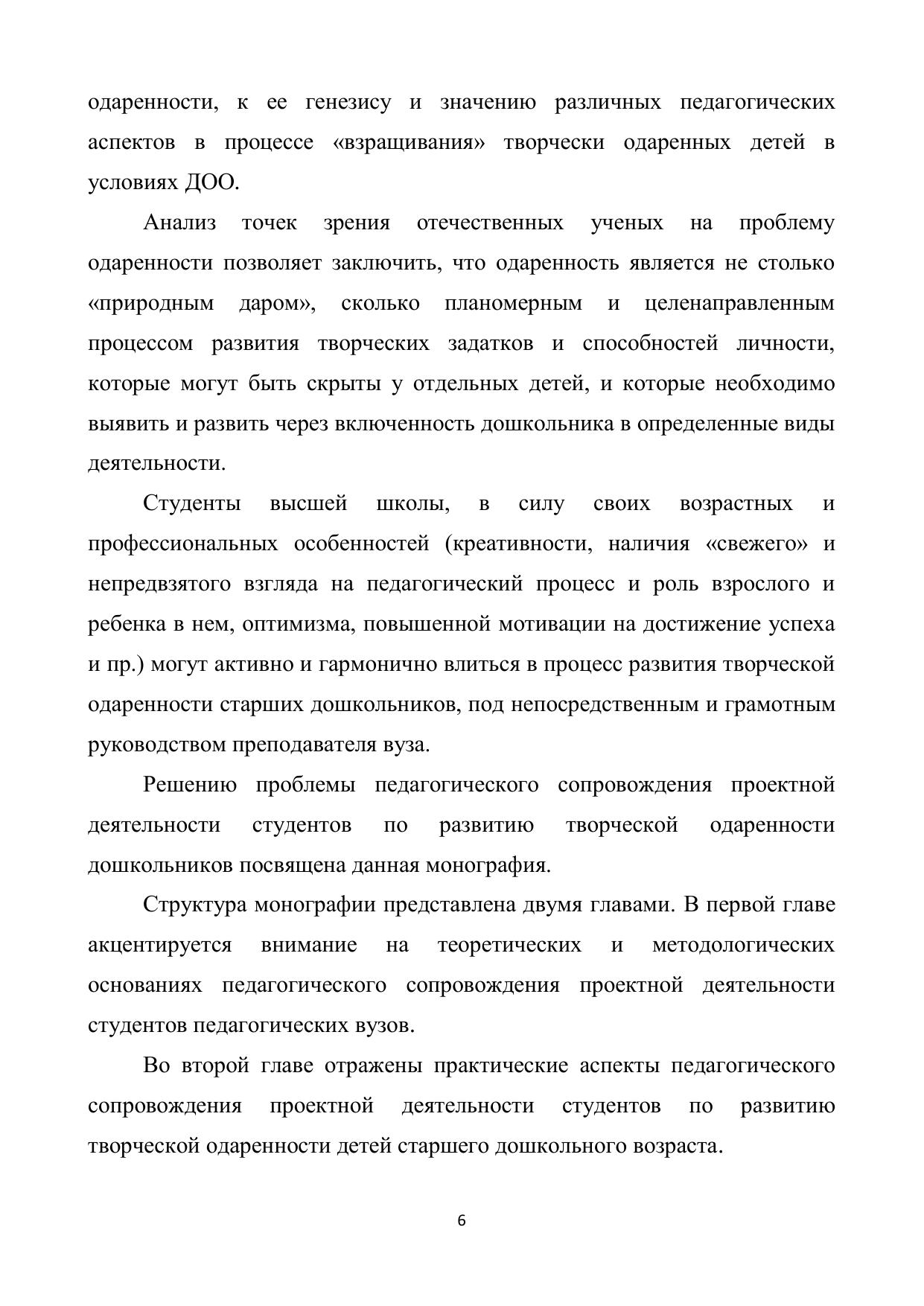 В монографии рассмотрены теоретические и методологичес-кие основания педагогического сопровождения проектной деятельности студентов по развитию творческой одаренности детей старшего дошкольного возраста.