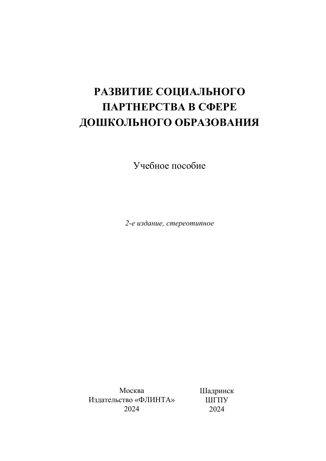 В учебном пособии представлены основные подходы к пониманию содержания социального партнерства в сфере дошкольного образования, его становлению и развитию в истории и современности; содержится практический материал по закреплению знаний и формированию навыков в организации системы социального партнерства в ДОУ.