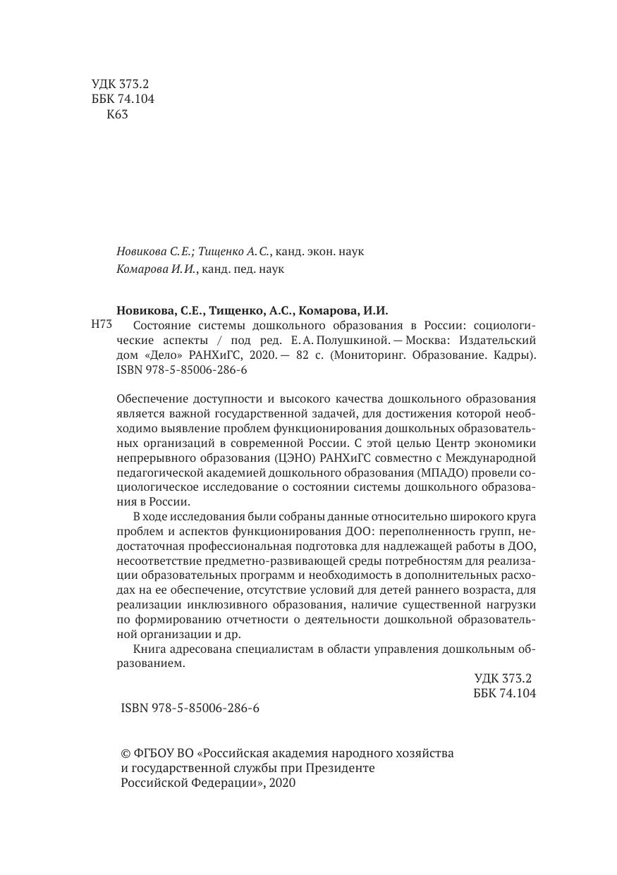 Авторы: Новикова С. Е., Тищенко А. С., Комарова И. И.