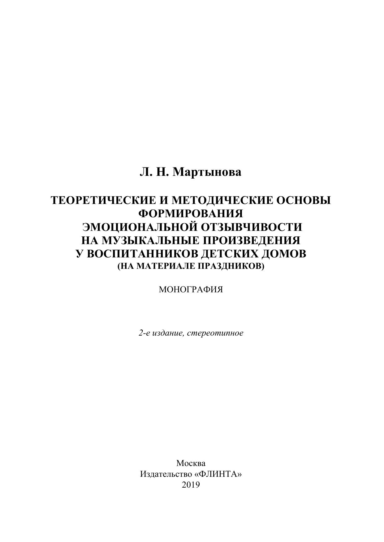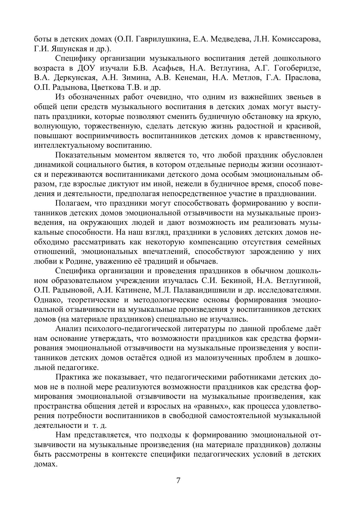 Теоретические и методические основы формирования эмоциональной отзывчивости на музыкальные произведения у детей дошкольноговозраста, проживающих в детских домах (на материале праздников)