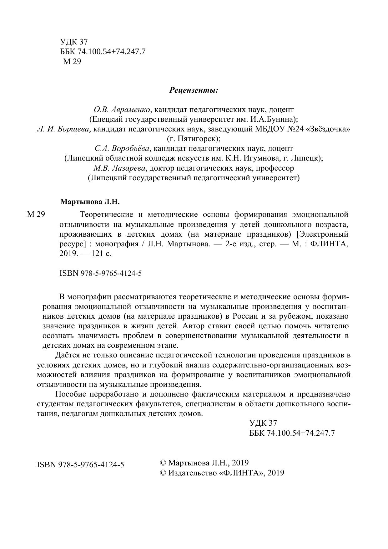 В монографии рассматриваются теоретические и методические основы формирования эмоциональной отзывчивости на музыкальные произведения у воспитанников детских домов (на материале праздников) в России и за рубежом, показано значение праздников в жизни детей. Автор ставит своей целью помочь читателю осознать значимость проблем в совершенствовании музыкальной деятельности в детских домах на современном этапе. Даѐтся не только описание педагогической технологии проведения праздников в условиях детских домов, но и глубокий анализ содержательно-организационных возможностей влияния праздников на формирование у воспитанников эмоциональной отзывчивости на музыкальные произведения. Пособие переработано и дополнено фактическим материалом и предназначено студентам педагогических факультетов, специалистам в области дошкольного воспитания, педагогам дошкольных детских домов.