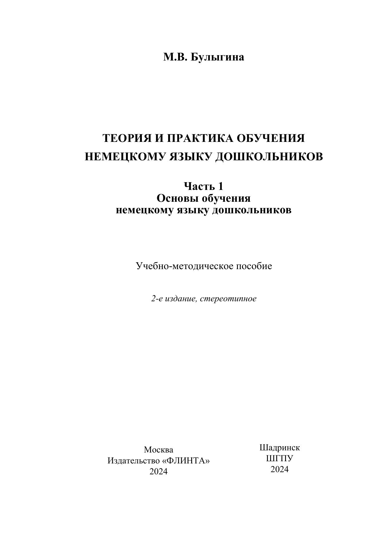 Теория и практика обучения немецкому языку дошкольников. В 2 ч. Ч. 1. Основы обучения дошкольников немецкому языку