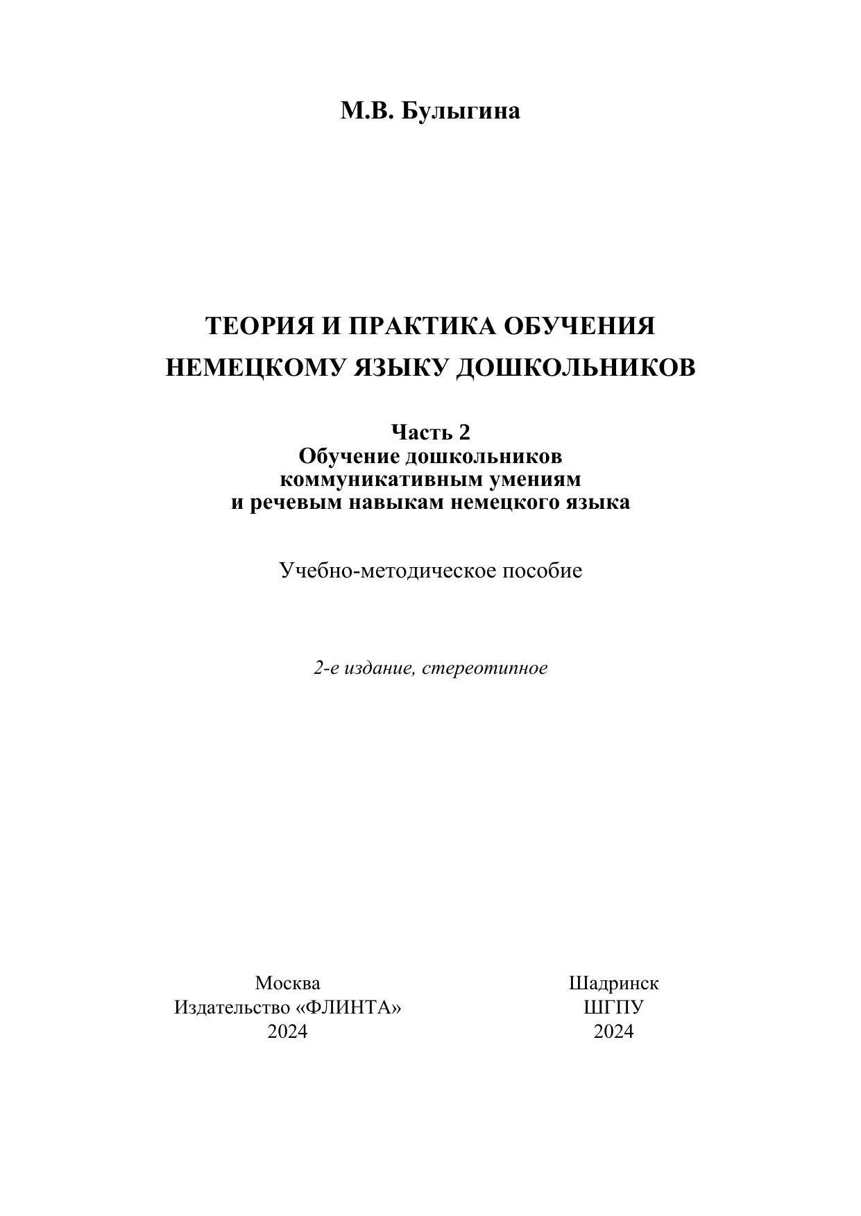Теория и практика обучения немецкому языку дошкольников. В 2 ч. Ч. 2. Основы обучения дошкольников немецкому языку