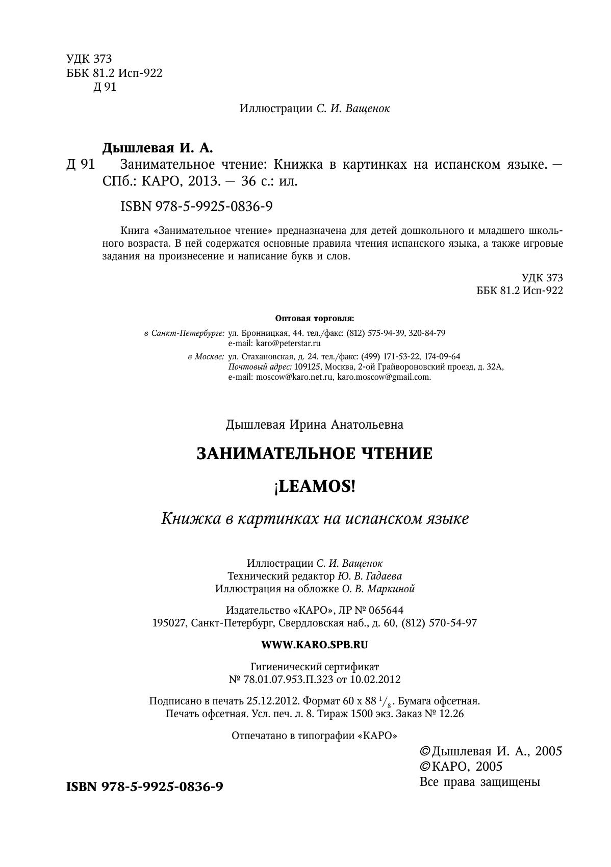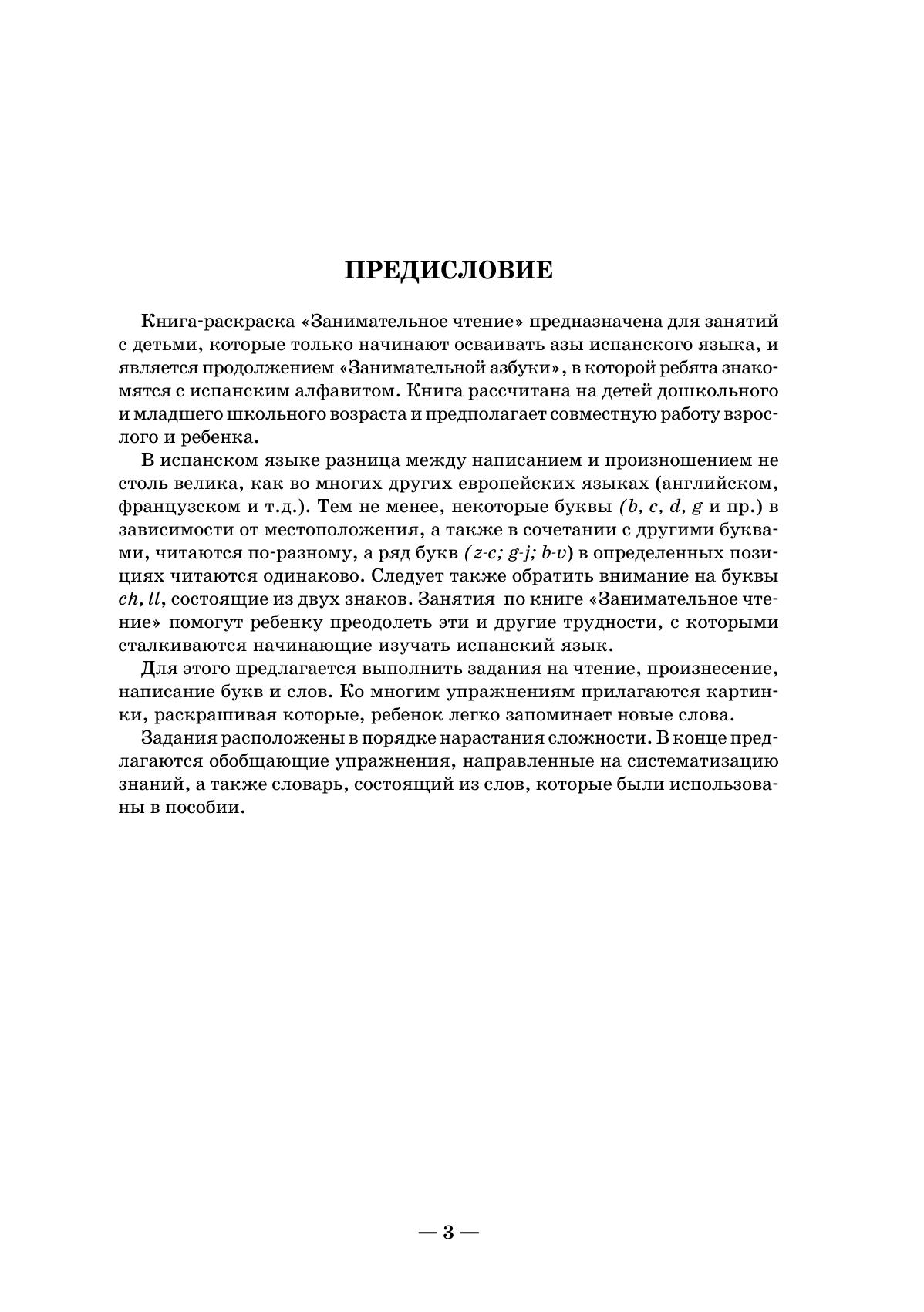 Книга «Занимательное чтение» предназначена для детей дошкольного и младшего школьного возраста. В ней содержатся основные правила чтения испанского языка, а также игровые задания на произнесение и написание букв и слов.